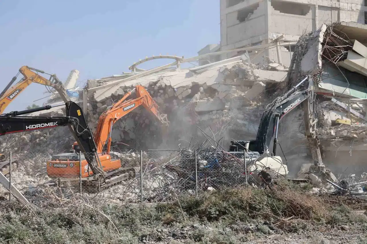 Kahramanmaraş merkezli depremlerde ağır hasar alan Hatay’da mahkeme süreci sona eren binaların yıkım ve enkaz kaldırma çalışmaları aralıksız sürüyor. Antakya ilçesi Alaattin Mahallesi’nde bulunan 10 katlı iş merkezi, iş makinesiyle kontrollü olarak yıkıldı. Binanın yıkılma anıysa kameralara yansıdı. 10 katlı binanın yıkımı esnasında herhangi bir olumsuzluk yaşanmadı.
