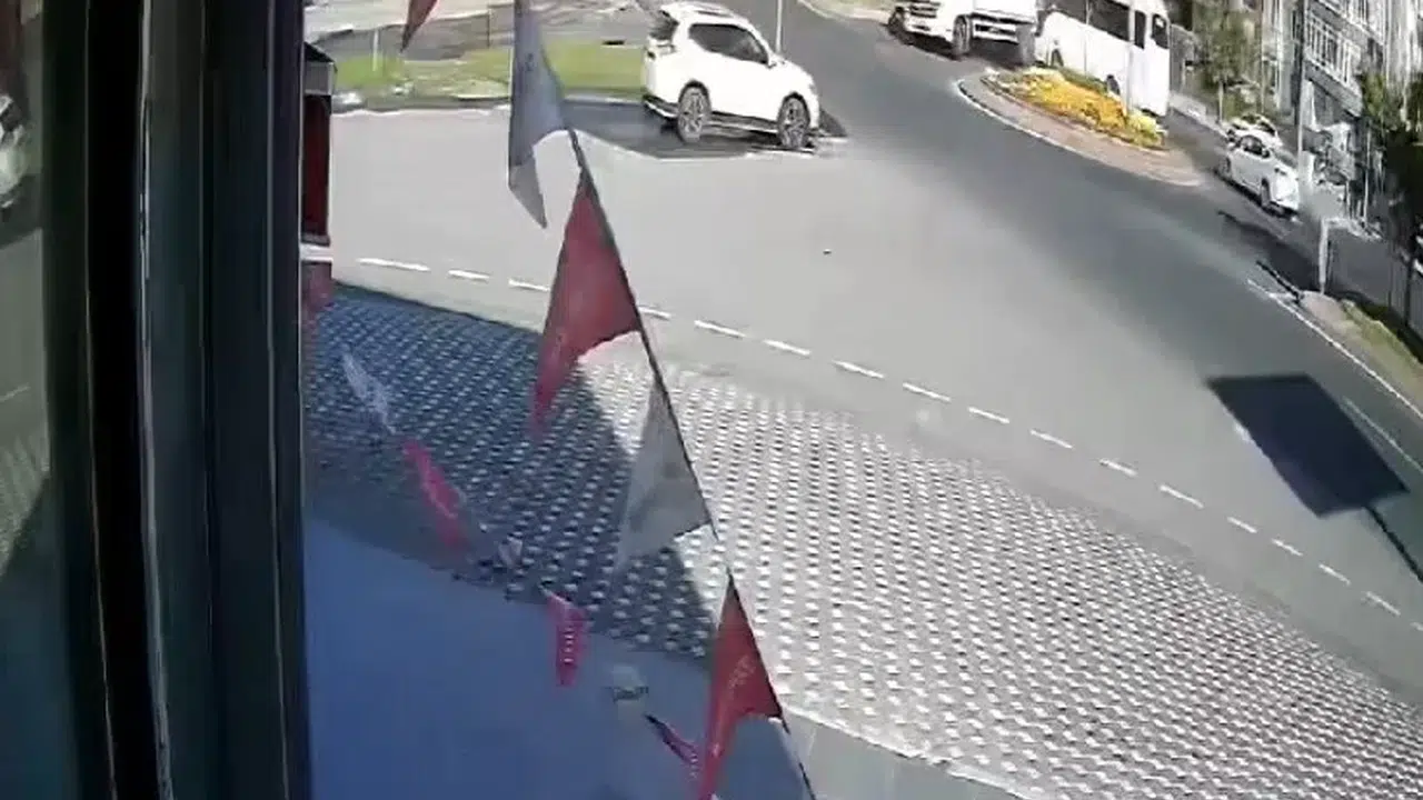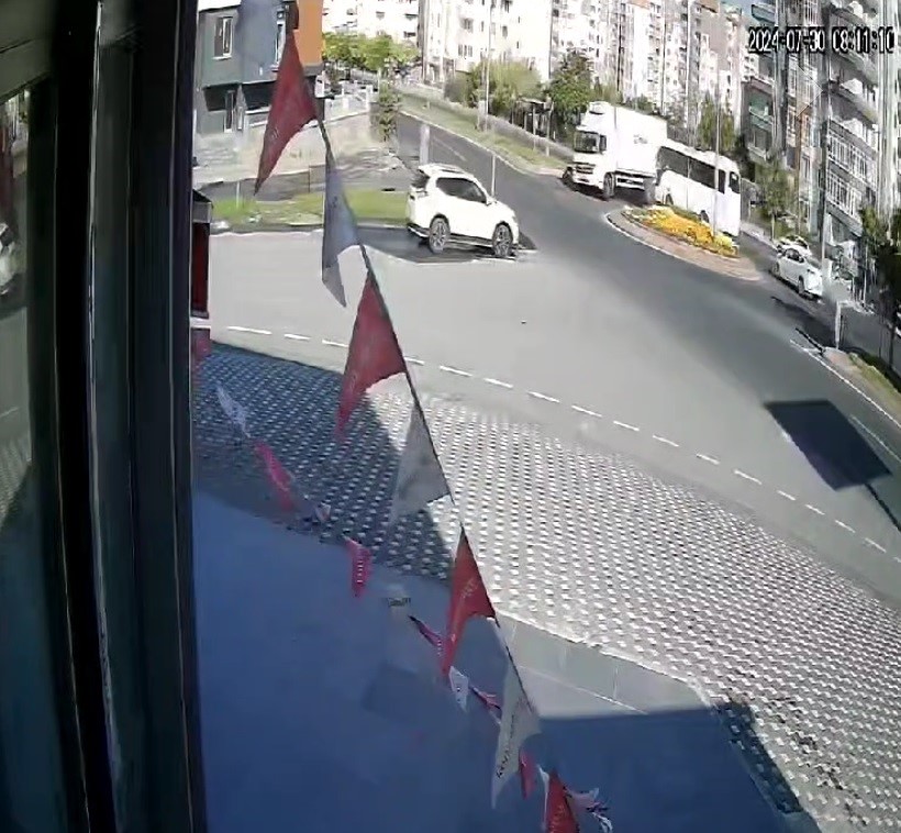 Öte yandan, 10 kişinin yaralandığı kaza güvenlik kamerasına yansıdı.