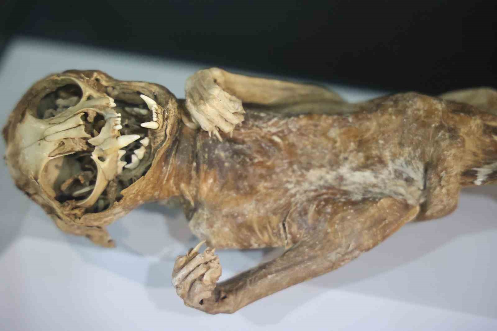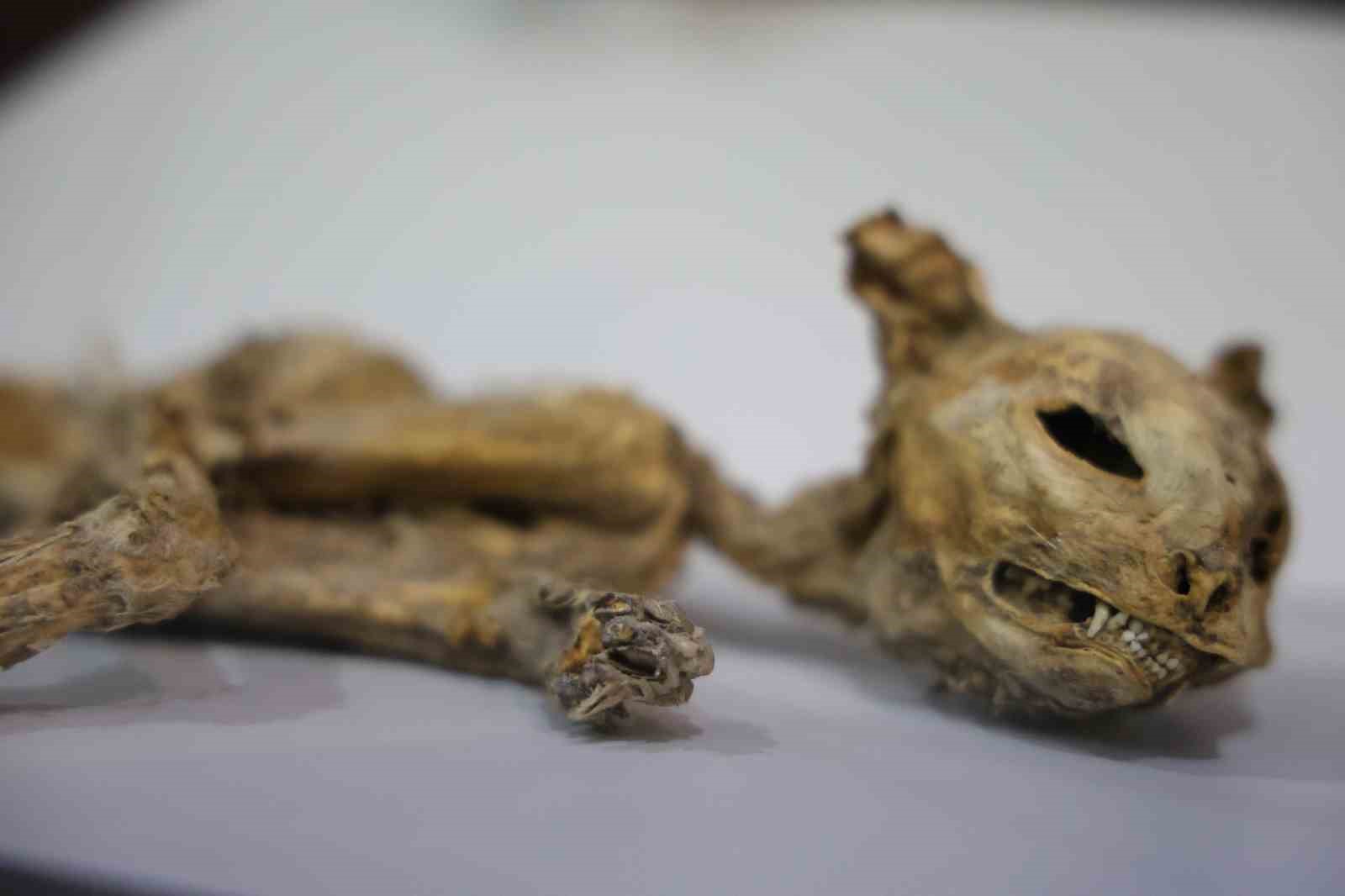 Mumyaların belirli sıcaklıktaki bölümlerde korunduğunu dile getiren Altın, “Şu anda biz bu mumyalarımızı burada özel tekniklerle, özel klima teknikleriyle mumya bölümümüzde 21 ile 23 derece arasındaki sıcaklıkta koruyoruz. Her yıl bunların bakım ve onarımlarını yapıp koruyoruz. Burada 13 adet mumyamız var. Bunlardan birisi yetişkin erkek mumyası, çocuk mumyaları, 7-8 yaşlarında çocuk mumyamız var ve bebek mumyalarımız var. Ayrıca çok enteresandır ki hayvansever vatandaşlarımızın çok ilgi gösterdiği, özelikle çocukların çok ilgi gösterdiği kedi mumyamız var. Kedi mumyamızda kişi sevdiğiyle olduğu için sevgisinden kedisini mumyalaştırmış. O da ziyaretçilerimiz tarafından büyük ilgi görmektedir” ifadelerini kullandı.