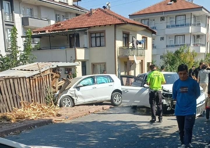 Demirel sokaktan çıkan Sürücü Emre Y.(29) yönetimindeki 16 Y 0100 plakalı otomobil, Paşaören sokaktan çıkan Sürücü Muhammet Salih Ç.(26) yönetimindeki 60 AEA 135 plakalı otomobil çarpıştı. Çarpışmanın etkisiyle savrulan araçlardan 60 AEA 135 plakalı otomobil evin bahçesindeki depoya çarparak durabildi.