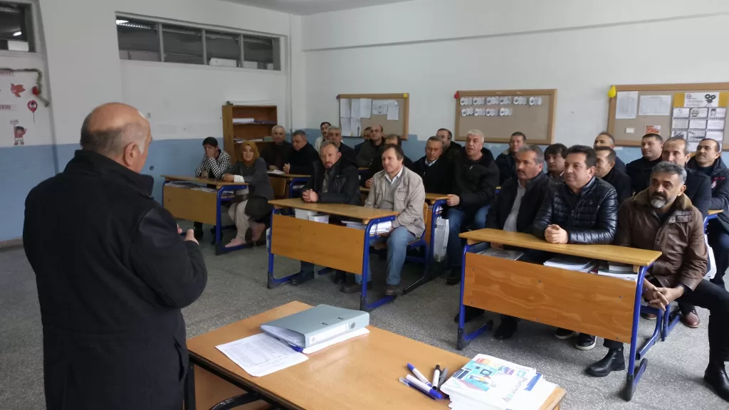 Oğuzlar Belediye Başkanı Muzaffer Yıldırım, 40 yıl sonra sınıf öğretmeni ve sınıf arkadaşlarıyla eğitim gördükleri sıralarda bulundu.