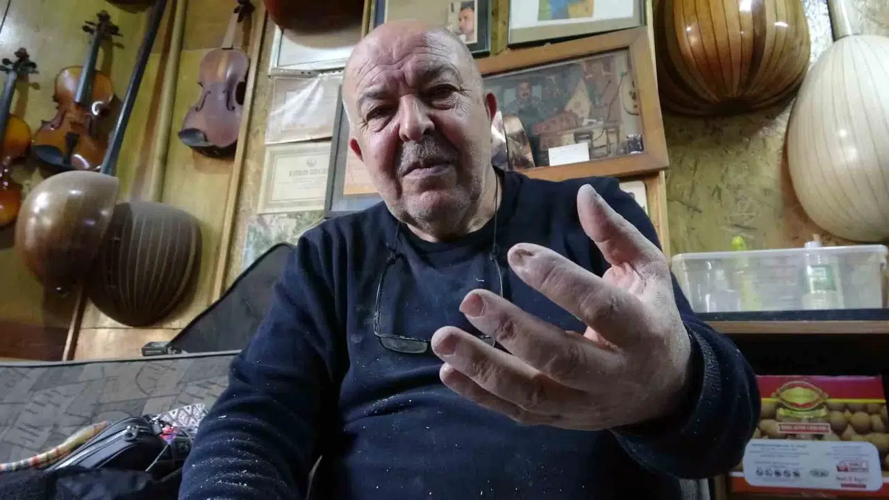Küçük yaşta başladığı ud yapımını 42 yıldır aralıksız sürdüren 66 yaşındaki Mustafa Karaoğlu, “Ben burada ud yapıyorum, keman tamir ediyorum. Çok küçük yaşta başladım. Babam marangozdu. Orada bazılarını görüp esinlendim. Karayollarında çalışıyordum ama dükkânımı hiç kapatmadım. Emekli olduktan sonra da kendimi dükkânıma adadım. 42 yıldır ud yapıyorum. Orglarda hazır ses çalsa da biz onları kullanmayız. Biz atalarımızdan gördüğümüz sazlarımızla uğraşıyoruz. Org dijital bir alet. Ruhu yok. Bir dönem ud çalıyordum. Tırnaklarımda hasar oluşunca daha da çalmak için elime almadım. Neredeyse 11 yıldır hiç çalmıyorum. Zaten profesyonel anlamda çalmıyordum. Benim için çalmaktansa yapmanın sevgisi çok daha ayrı. Ben bu işe başladım başlayalı vatandaşın ilgisi oldu. Bu ilgi halen de devam ediyor. İyi bir udun yapımı 20 gün sürer. Yapımında çeşitli birçok ağaç kullanılır. Göğüs kapağına olmazsa olmaz ladin kullanıyoruz. Sırtı gül ağacıdır. Ceviz, kiraz, venge gibi birçok çeşidi kullanıyoruz” dedi.