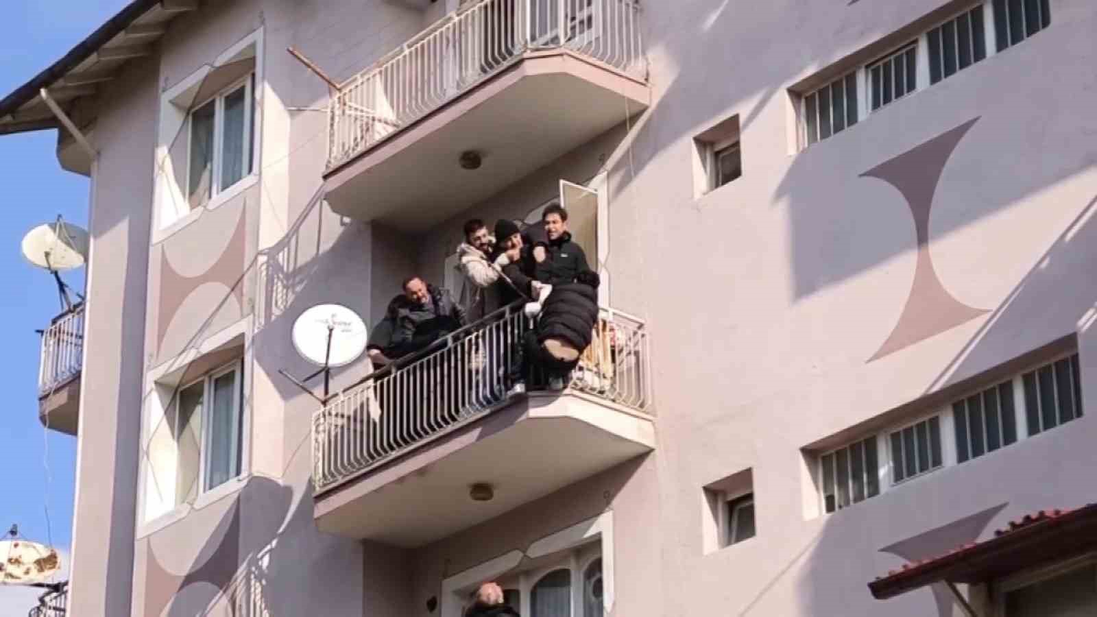 Bunun üzerine olay yerine acil sağlık ve itfaiye ekipleri de sevk edildi. Polisler korkuluklara tutunan genci uzun süre ikna etmeye çalıştı. Direnen gencin bir anlık dalgınlığını fırsat bilen ekipler kollarından tutup onu yukarı çekmeyi başardı.