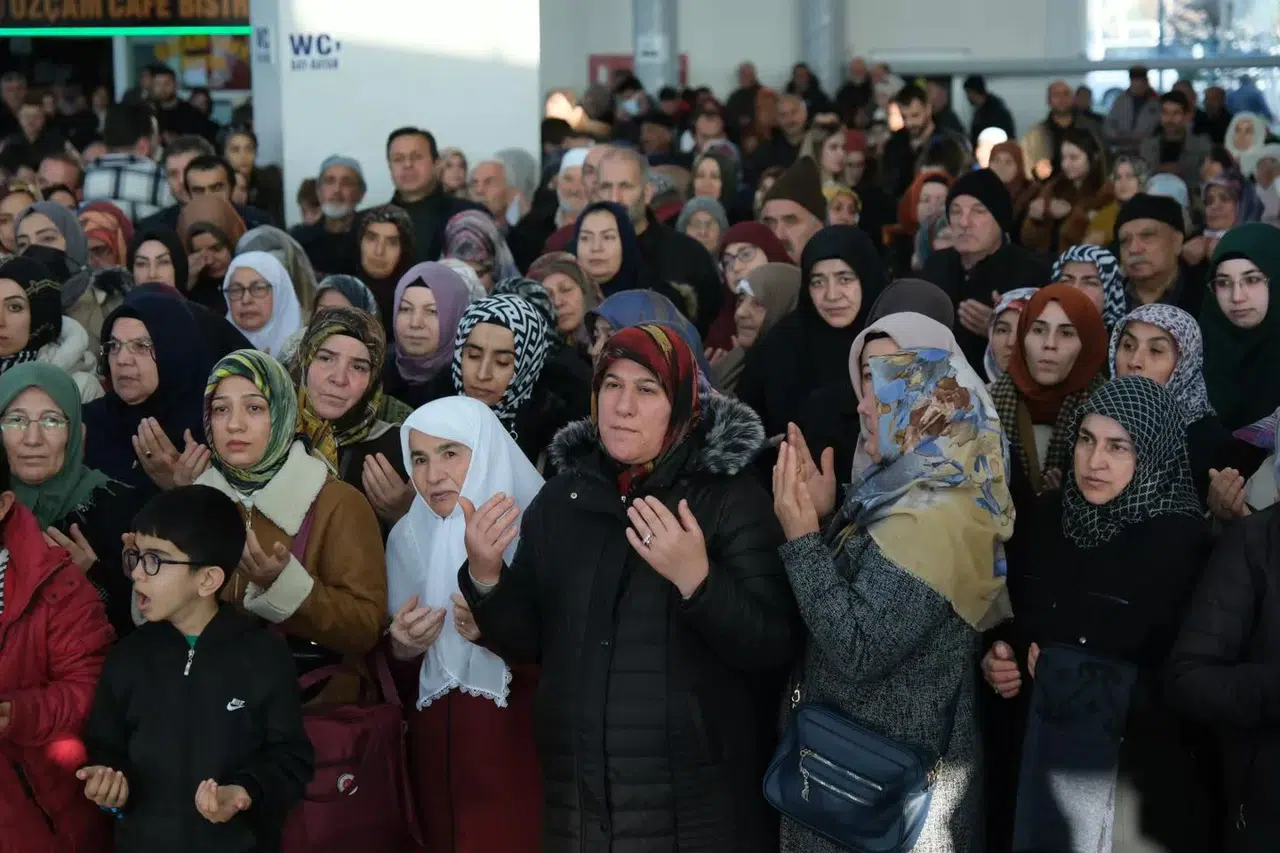 İl Müftü Yardımcısı Adem Aygül'ün yaptığı duanın ardından umre yolcuları tekbirlerle telbiyelerle uğurlandı.