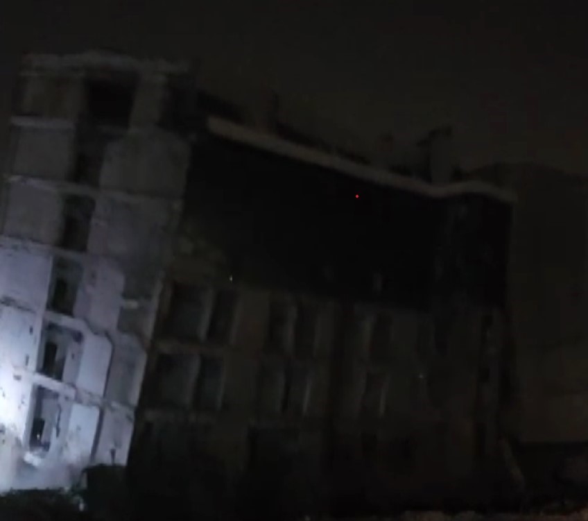 Hatay’da depremde hasar alan 6 katlı Eğitim ve Araştırma Hastanesinin bir blokunun yıkılma anı cep telefonu kamerasına yansıdı.