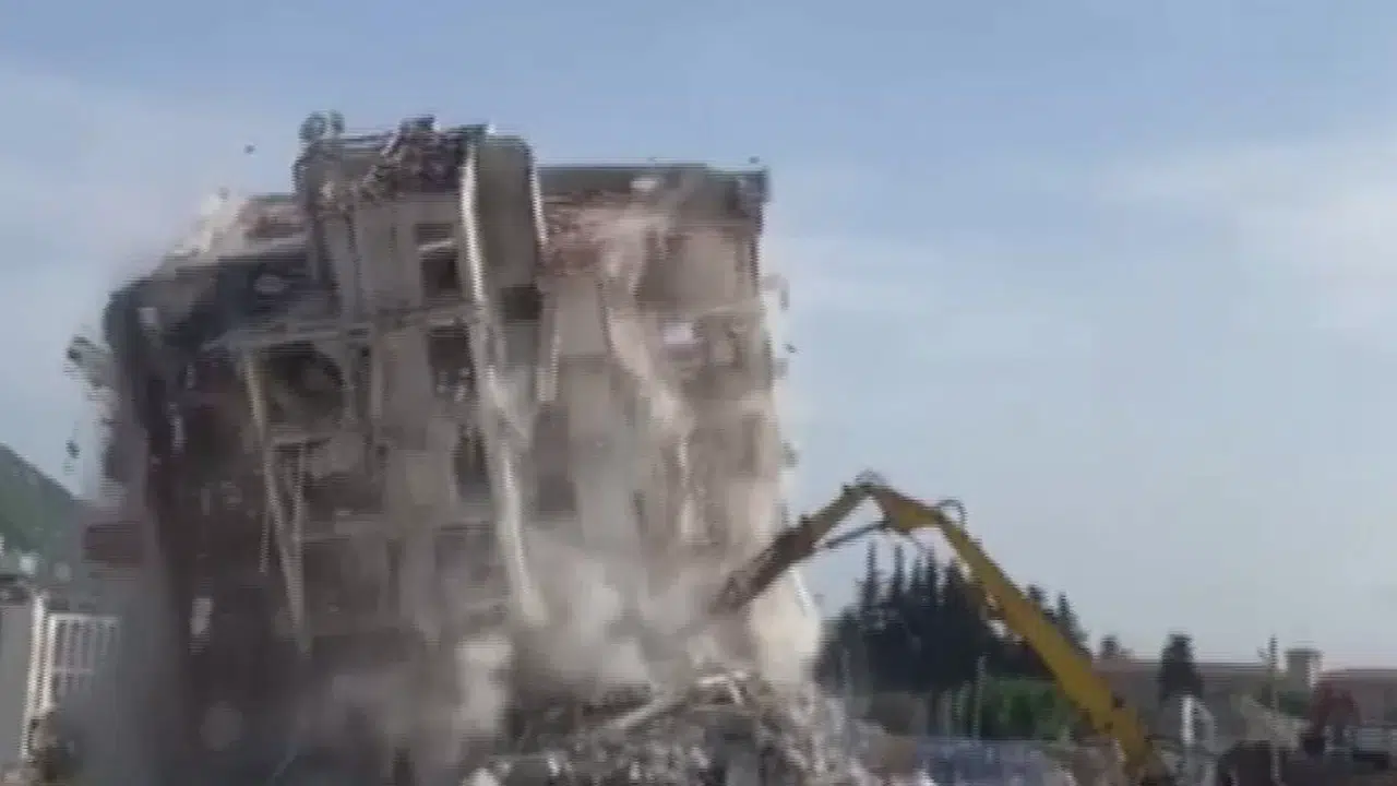 7 Katlı Bina İş Makinesinin Darbesiyle Yıkıldı