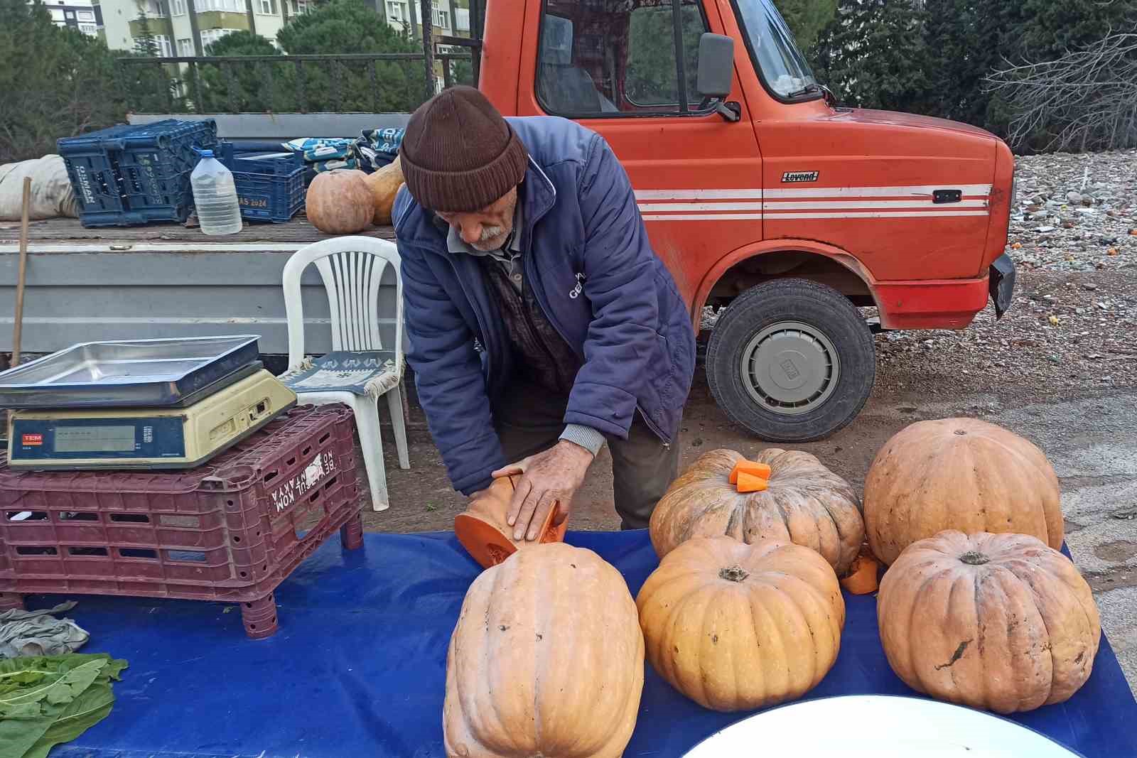 Yıldız, "50 yıldır pazarcılık yapıyorum. Burada sattığım kabakları kesiyorum, soyuyorum, paketliyorum ve müşterilere sunuyorum. Fiyatları ise paketlenmiş 30 TL, kabuklu veya tüm alırsa 25 TL kilosu. Buraya haftada iki gün geliyorum ve burada satışımı yapıyorum. Kabağın tatlısı yapıldığında ise çok faydası vardır. Küçük çocukların gelişiminde katkısı vardır. Sağlık açısından faydaları oldukça fazla. Yemelerini tavsiye ediyorum. Ben ise burada satış yaparak ekmeğimin peşindeyim" diye konuştu.
