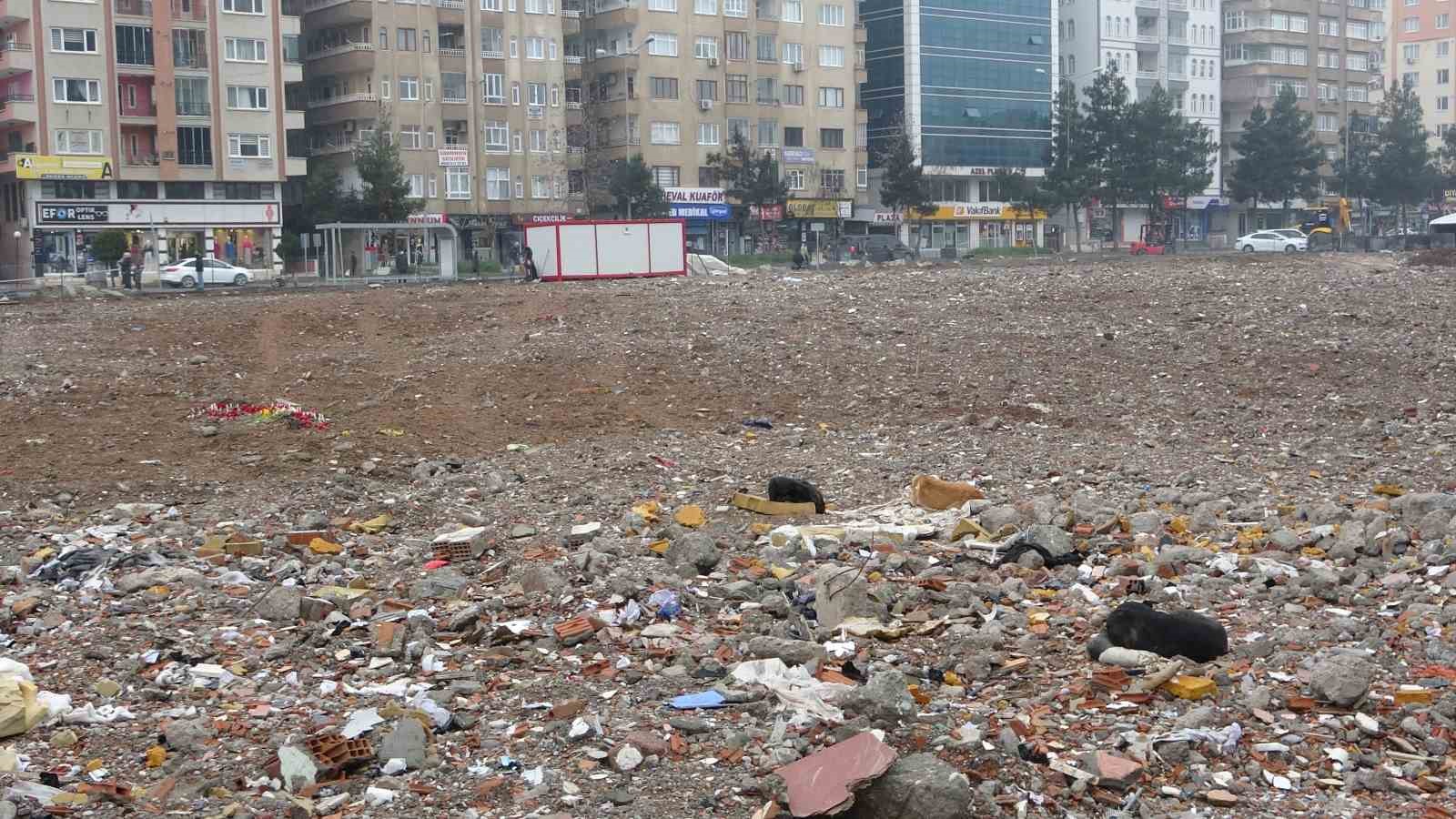 Diyarbakır’da, Kahramanmaraş merkezli depremlerde 89 kişinin hayatını kaybettiği Diyar Galeria İş Merkezi’nin bulunduğu alan telle kapatılması sonrası sokak köpeklerinin mekanı haline geldi.