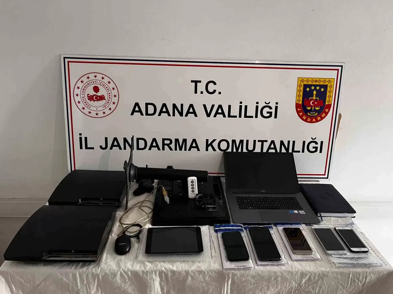 Aramalar sonucunda; 5 cep telefonu, 1 tablet bilgisayar, 1 dizüstü bilgisayar, 1 bilgisayar monitörü görünümlü düzenek, 2 adet düzeneğe ait olduğu değerlendirilen oyun konsolu ve bağlantı kabloları ile dokümanlar ele geçirildi.