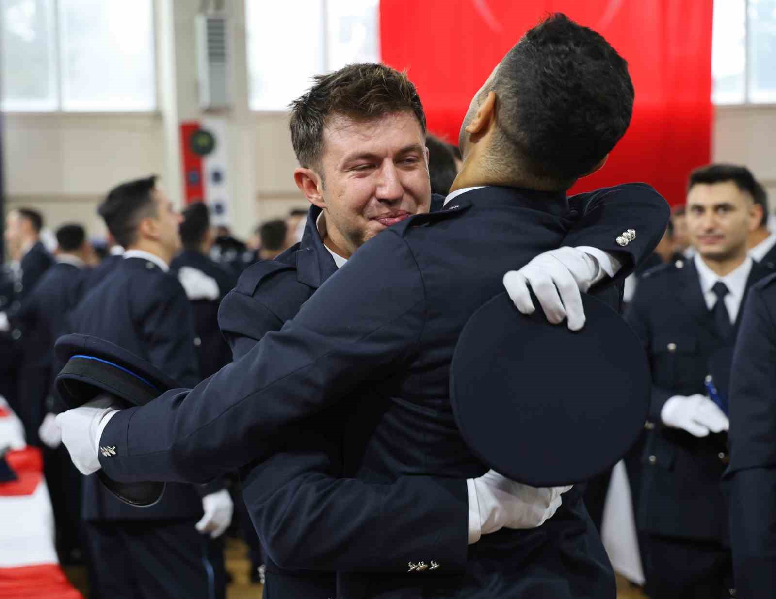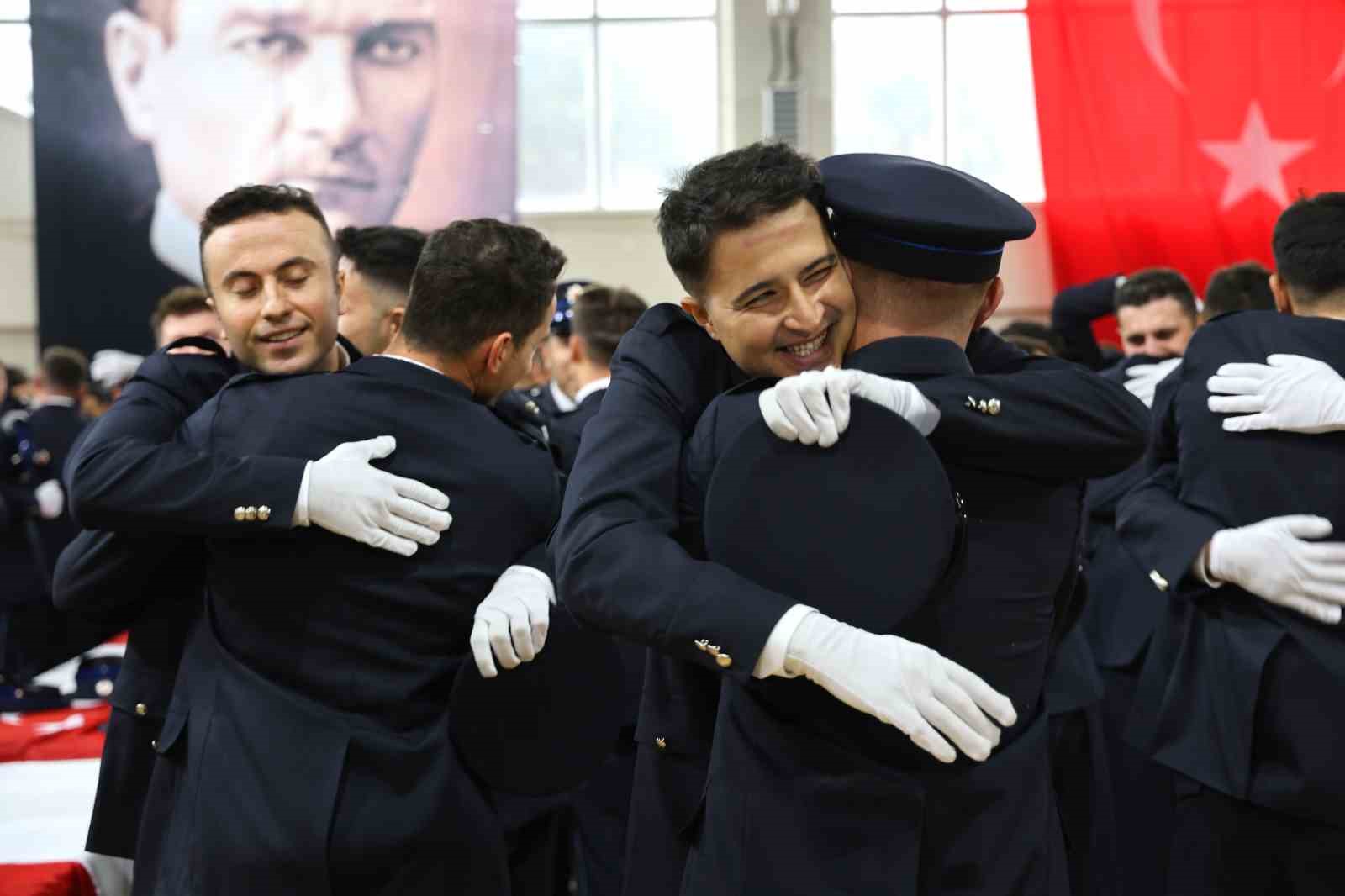 Konuşmaların ardından silah başına gelen polis adayları, meslek yeminlerini edip kep attı. Törenin ardından polis adayları, mutluluklarını birbirlerine ve ailelerine sarılarak kutladı.