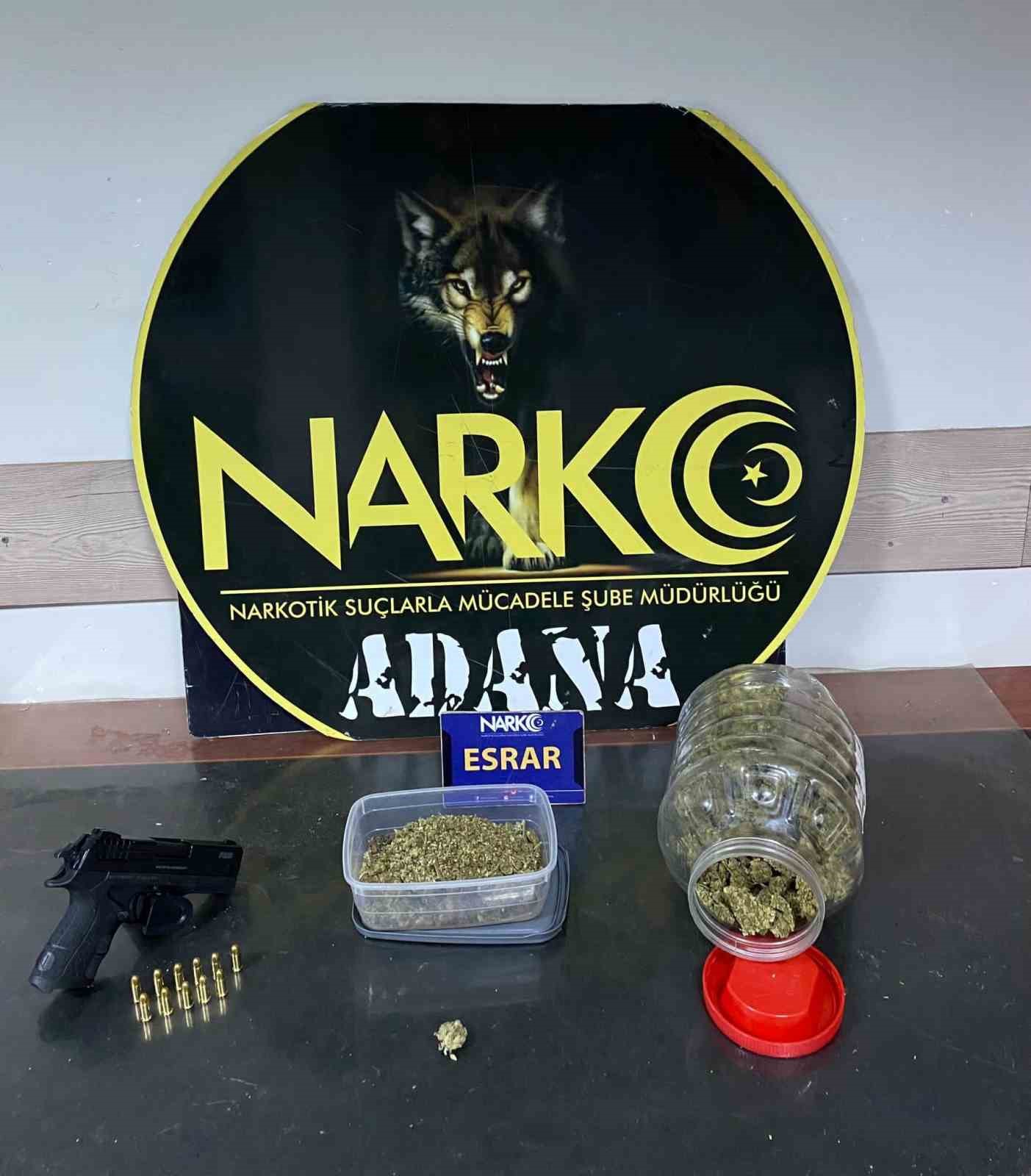 Adana Emniyet Müdürlüğü Narkotik Suçlarla Mücadele Şube Müdürlüğü ekipleri, uyuşturucu satıcılarına yönelik operasyon düzenlendi. Operasyonda Şehmus B., Şehmus A. ile Yaşar T. yakalandı. Şüphelilerin üzerinde yapılan arama çalışmalarında 64.35 gram bonzai hammdesi, 262,92 gram esrar, 901,21 gram bonzai ile ruhsatsız tabanca ve 11 adet mermi ele geçirildi.