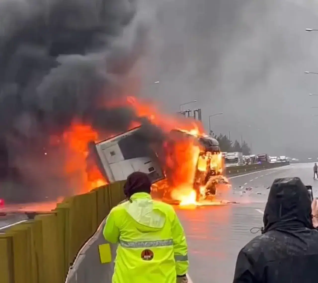 Adana’da Otoyolda Tır Yandı, Otobüsteki Yolcular Tahliye Edildi