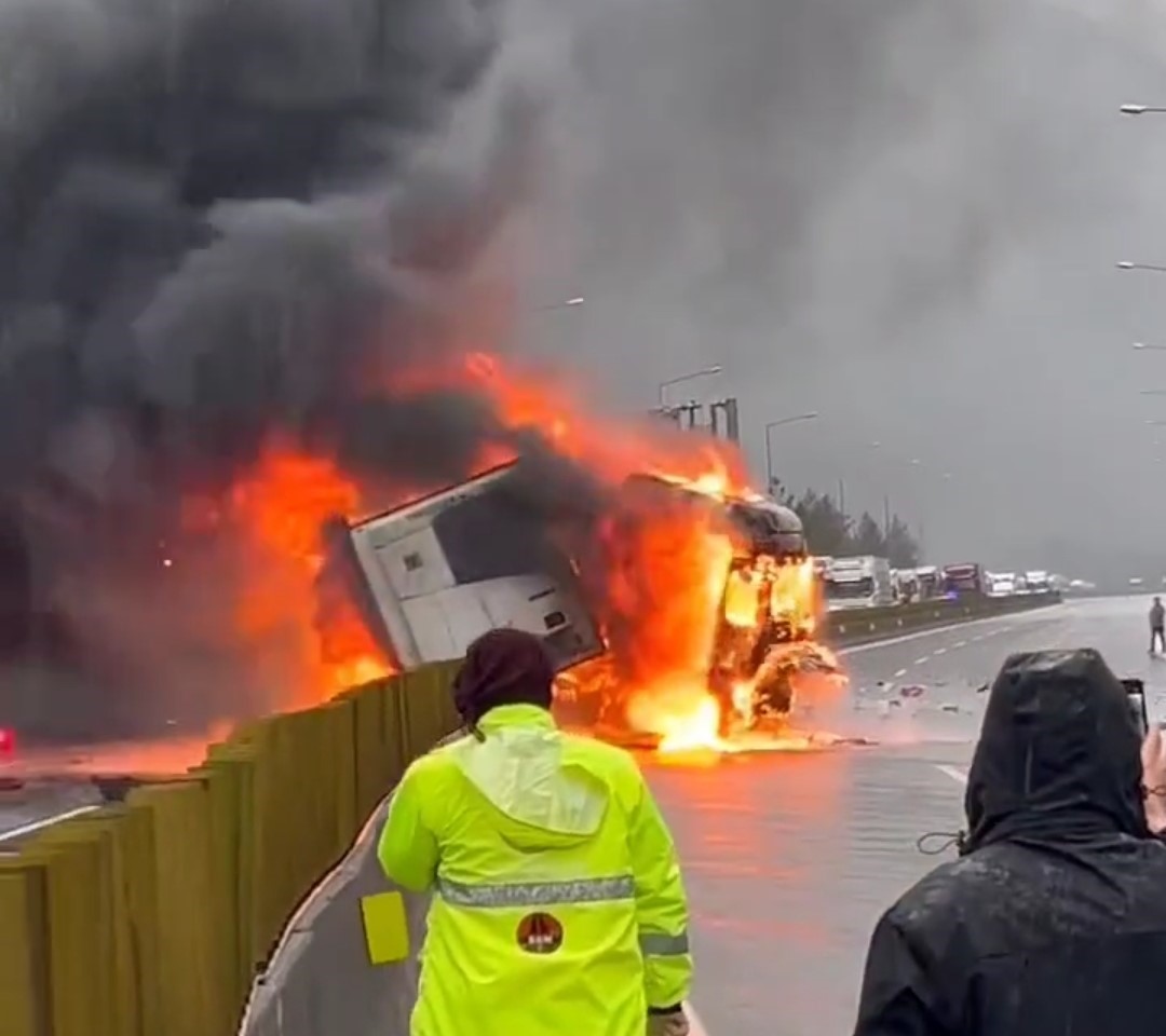 Adana’nın Pozantı ilçesi yakınlarında kaza yapan tır yanarken hemen yanında bulunan otobüsteki yolcular tahliye edildi.