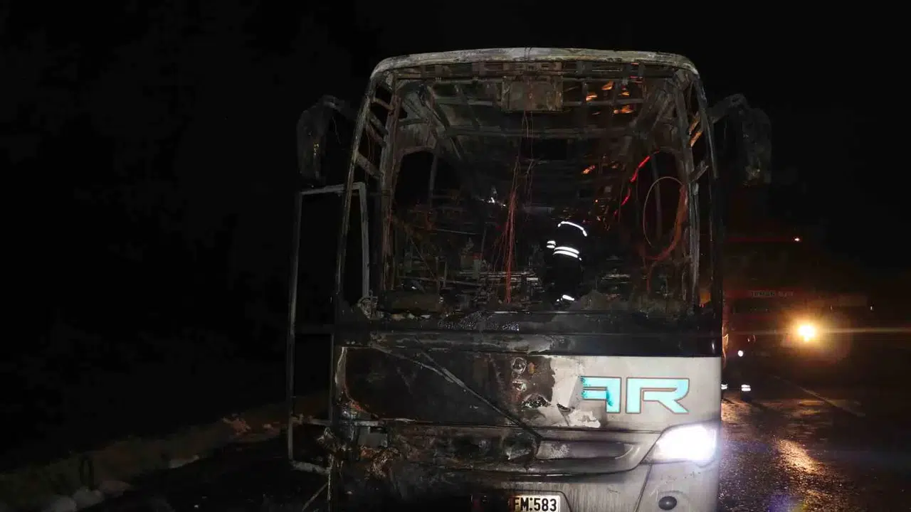 Adana’da seyir halindeki bir yolcu otobüsü alev topuna döndü.
