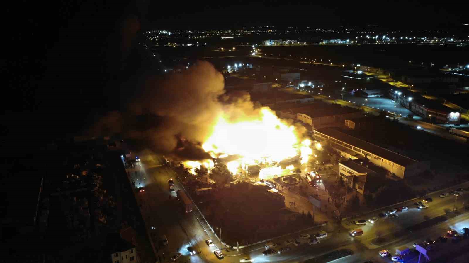 Organize Sanayi Bölgesi’nde faaliyet gösteren orman ürünleri fabrikasında akşam saatlerinde henüz belirlenemeyen bir sebeple yangın çıktı. Yangın ihbarı üzerine bölgeye çok sayıda itfaiye ekibi sevk edildi. Fabrikada bulunan plastik ve ahşap ürünlerin bir anda alev almasıyla çıkan yangında alevler ve dumanlar metrelerce yükseğe çıkarken, yangına 26 itfaiye aracı, 4 arazöz, İl Emniyet Müdürlüğü’ne ait 4 TOMA ile ekipler müdahaleye başladı. Dron ile havadan çekilen görüntüler ise felaketin boyutunu gözler önüne serdi. Olayda ilk belirlemelere göre ölen ya da yaralanan olmadığı bildirilirken, yangına ekiplerin müdahalesi sürüyor.