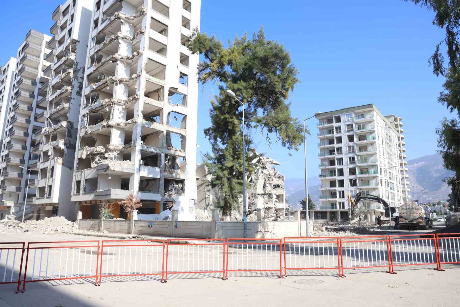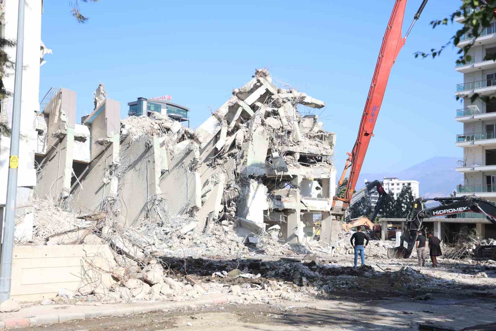 Hatay’ın İskenderun ilçesinde ağır hasarlı binanın yıkımı sırasında başka ağır hasarlı binaya zarar verildiği için çevredeki iki bina çökme riskine karşı boşaltıldı.