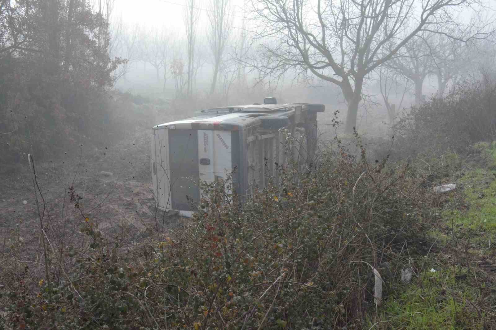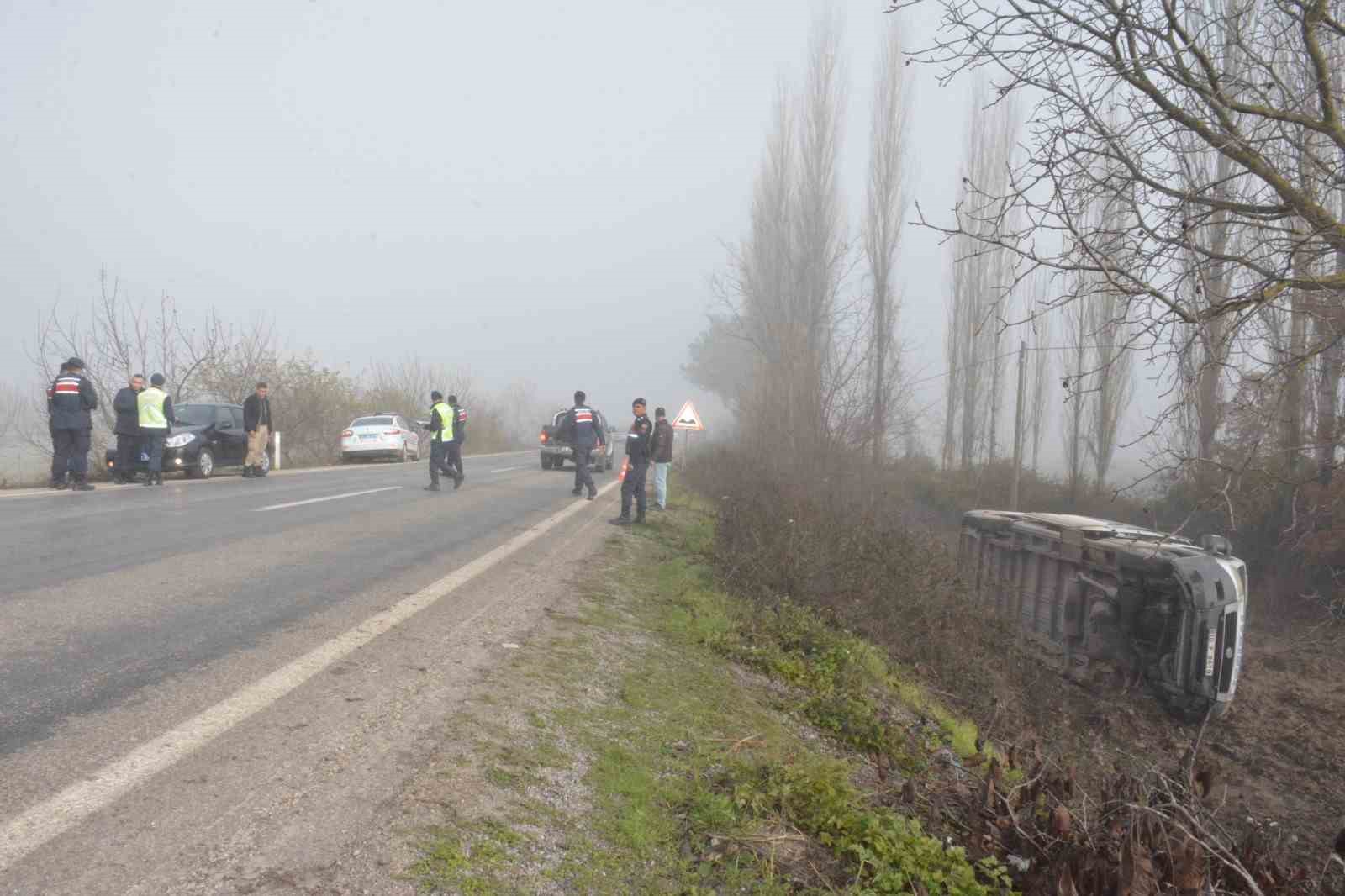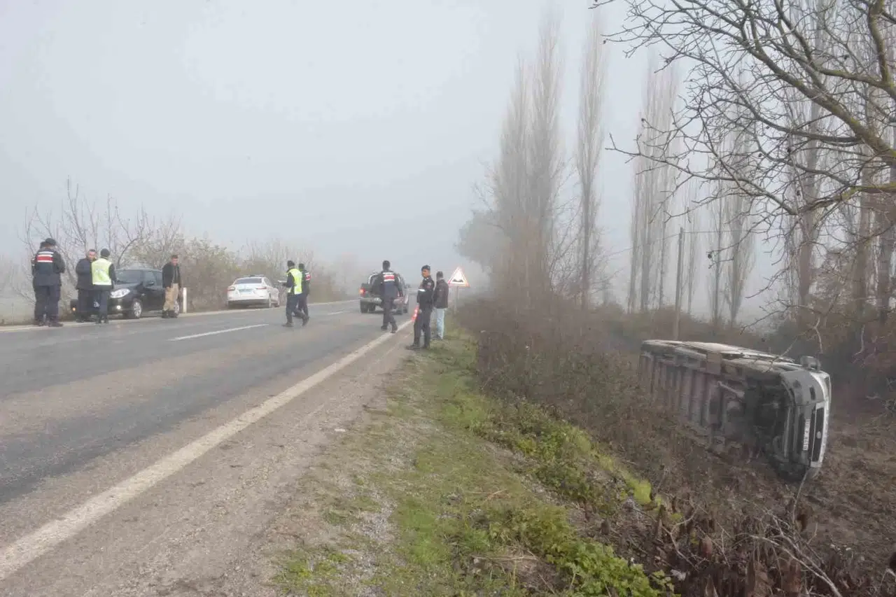 Soma-Savaştepe karayolunun Yağcılı Mahallesi mevkiinde Tuncay Aktaş idaresindeki 10 P 8410 plakalı minibüs, yoğun sis nedeniyle sürücüsünün direksiyon hakimiyetini kaybetmesi sonucu yoldan çıkarak şarampole devrildi. Tek taraflı kazanın ardından olay yerine çok sayıda ambulans, itfaiye ve jandarma ekibi sevk edildi. Yaralılar Manisa’nın Soma ve Balıkesir’in Savaştepe ilçesindeki hastanelerde tedavi altına alınırken, hayati tehlikesi bulunan yaralı olmadığı öğrenildi.