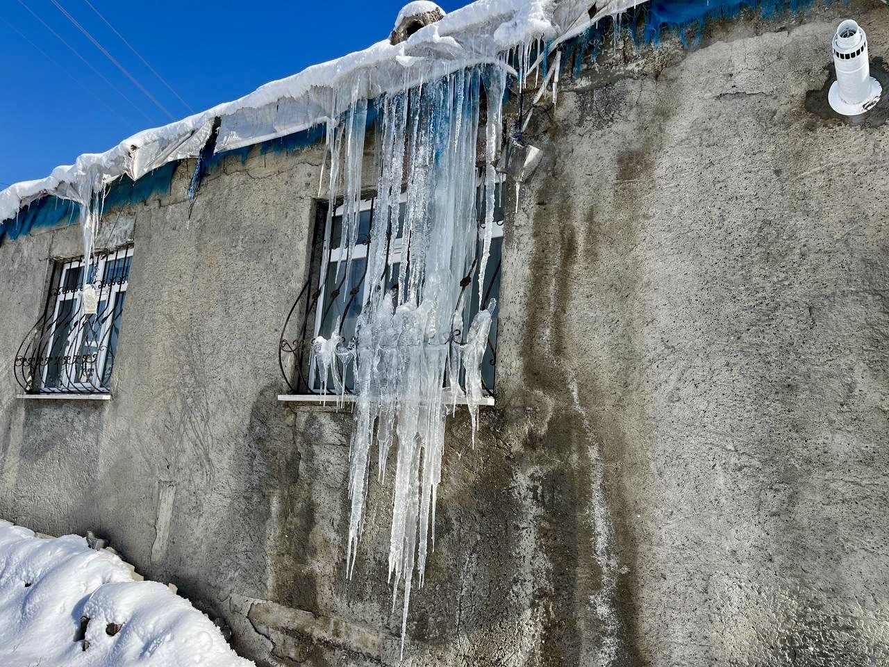 Ağrı’da dondurucu soğuklar nedeniyle evlerin çatılarında dev buz sarkıtları oluştu. Soğuk havanın etkisini en çok hissettirdiği illerin başında gelen Ağrı’da birçok noktada don meydana geldi. Evlerin çatılarında, pencere ve balkon boyunu aşan buz sarkıtları oluştu. Vatandaşlar ise araçlarını soğuktan koruyabilmek için battaniye ile sardı.