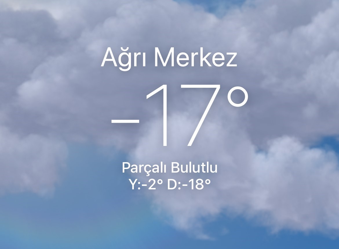 Ağrı yeniden dondurucu soğuklara teslim oldu, termometreler eksi 17 dereceyi gösterdi.