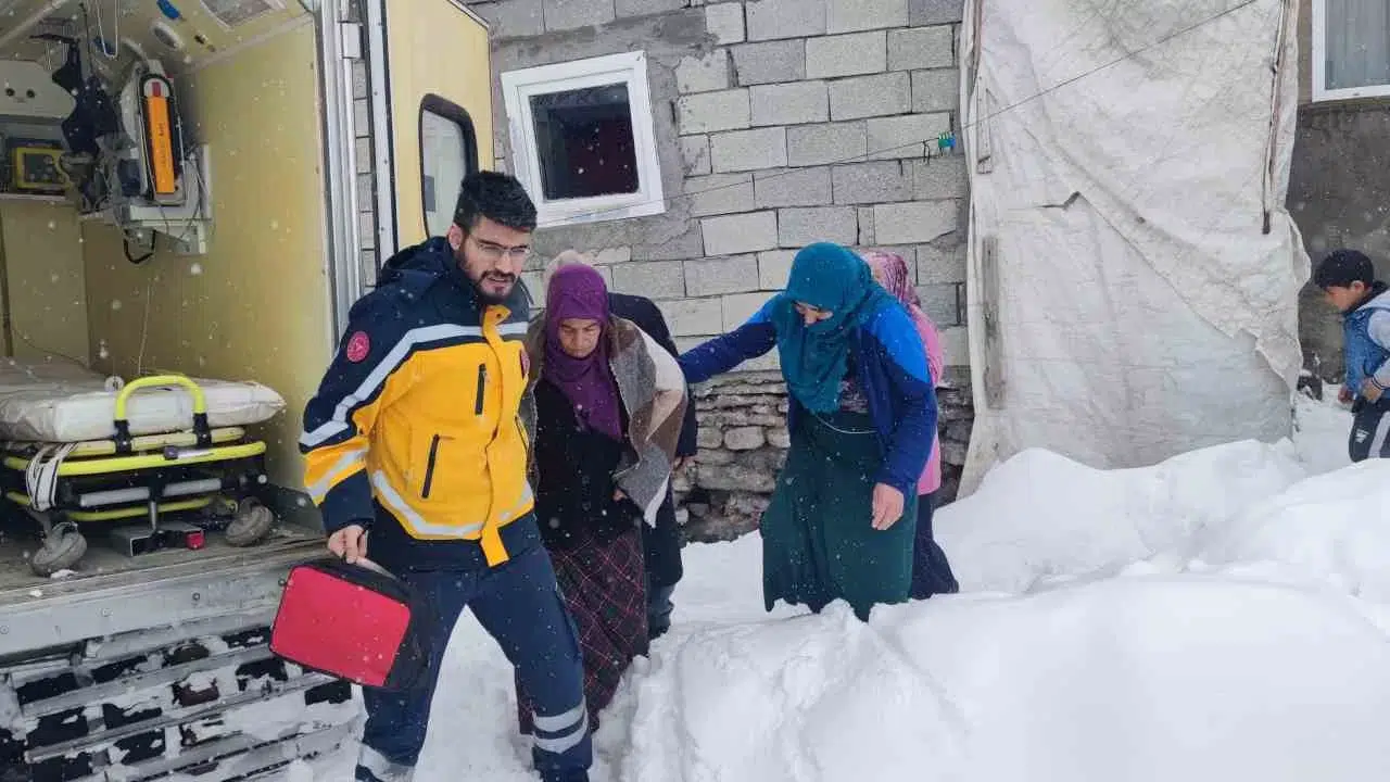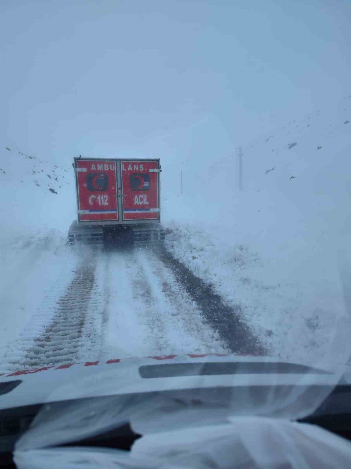 Ağrı’nın Hamur ilçesine 48 kilometre uzaklıkta bulunan Ayvacık köyünde rahatsızlanan hamile H.Ç., yolun kar ve tipi nedeniyle ulaşıma kapalı olmasından dolayı hastaneye gidemedi. Bunun üzerine yakınları durumu 112 Acil Çağrı Merkezine bildirdi. İhbar üzerine hemen harekete geçen sağlık ekipleri, paletli ambulansla yola çıktı. 6 saatlik çalışmanın ardından köye ulaşan ekipler, hamile kadını Karadoğu köyünde kendilerini bekleyen normal ambulansa aldı.