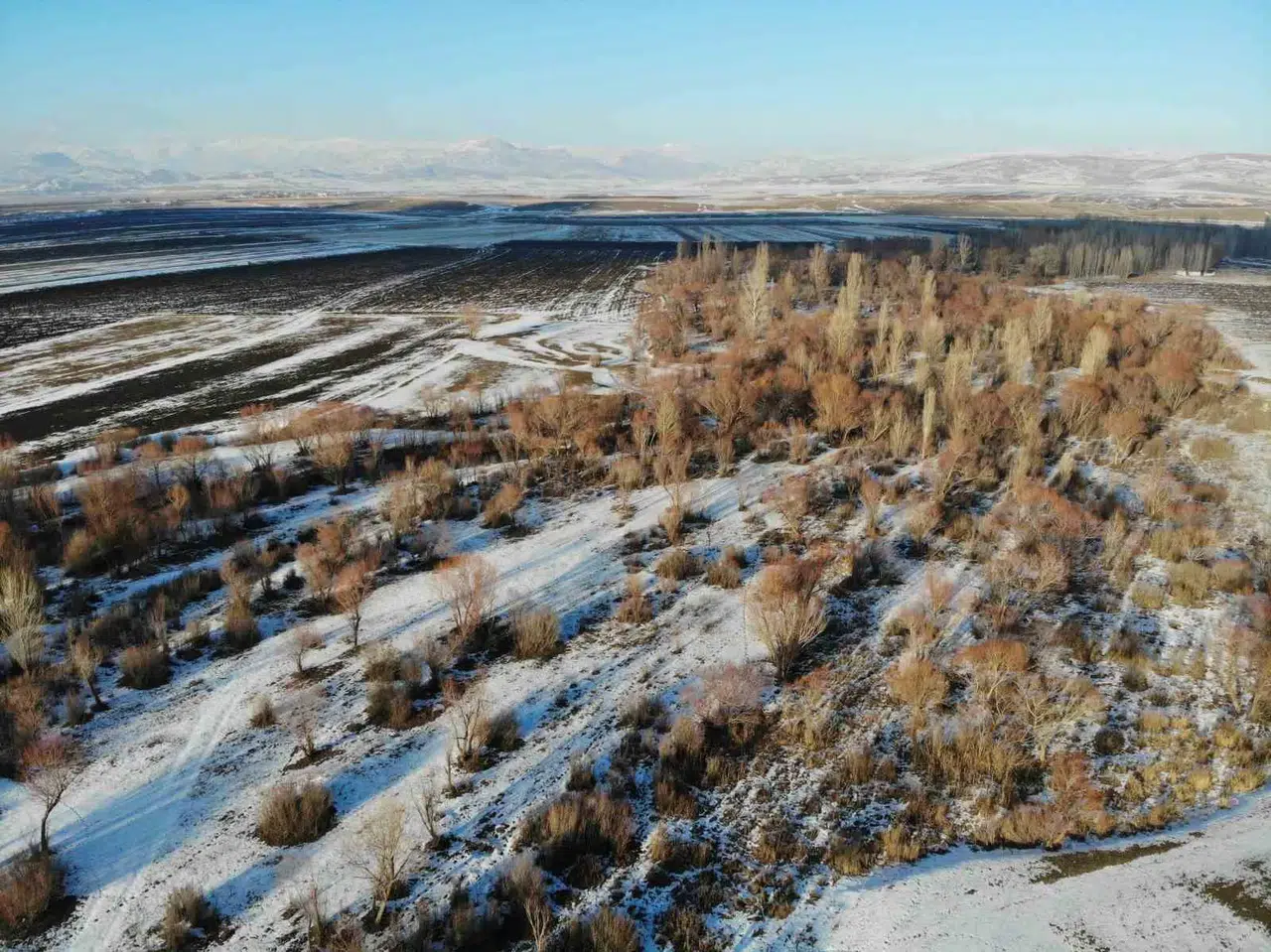 Günlük yaşamı zorlaştırmasına rağmen güneşle beraber parlayan karın tadını çıkarmak isteyen vatandaşlar doğayla buluşurken, karın eşsiz güzelliği havadan görüntülendi.