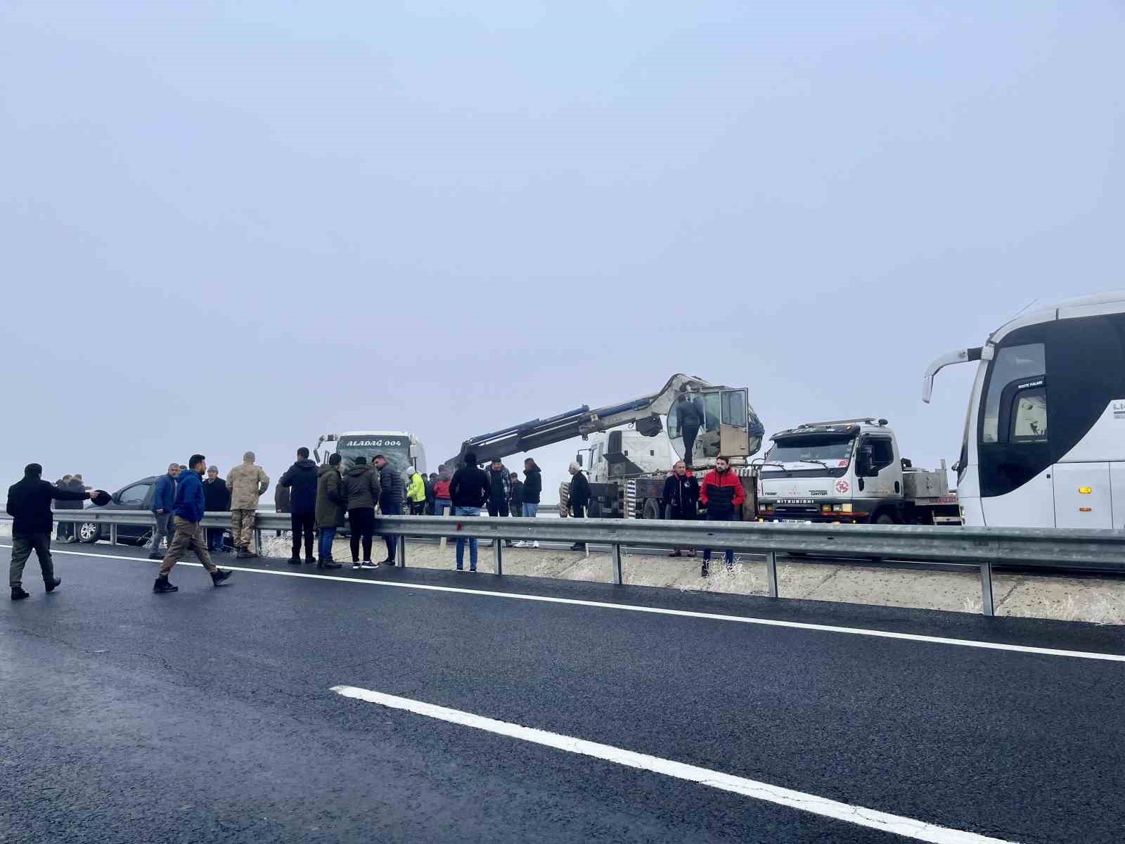 Ağrı’da yoğun sis nedeniyle görüş mesafesinin düşmesinden kaynaklı olarak meydana gelen zincirleme kazada 19 kişi yaralandı.