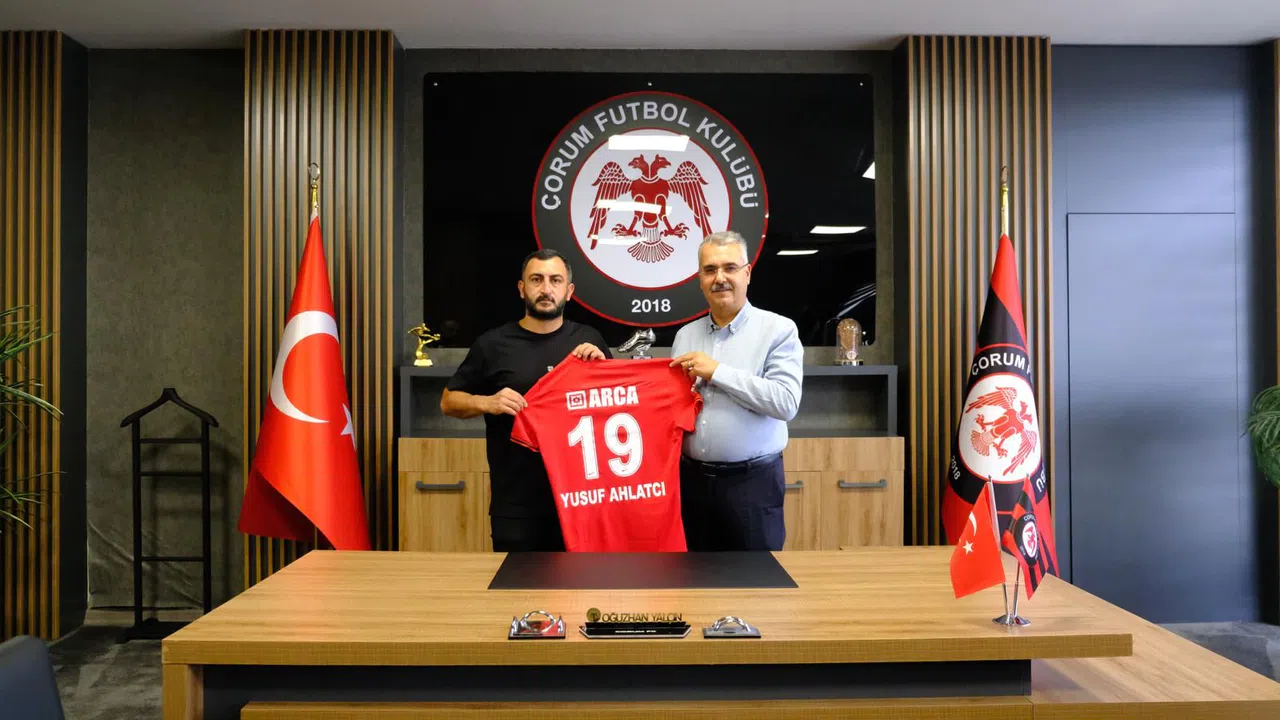 19 numaralı Ahlatcı Çorum FK formasını üzerine giyen Yusuf Ahlatcı ise nazik düşüncesinden dolayı Başkan Oğuzhan Yalçın’a teşekkür ederek, “Formamı üzerimde gururla taşıyacağım” dedi. (Sümeyra Özdoğan)