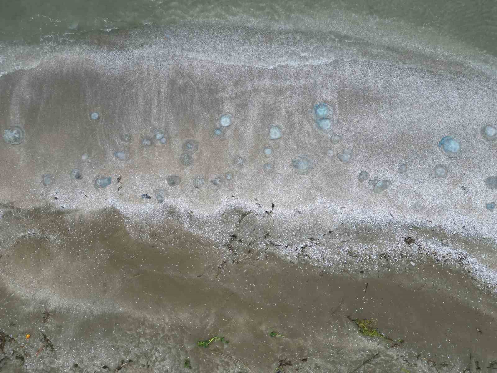Akdeniz kıyılarında geçtiğimiz haftalara ölü denizanaları görülmeye başlanmıştı. Akdeniz’e kıyısı olan Hatay’ın Samandağ ve İskenderun ilçelerinde sahilde ölü denizanaları görülmüştü. Şimdiyse Erzin ilçesinde bulunan Burnaz sahili de ölü denizanalarıyla kaplandı. Uzmanların ’dokunmayın’ uyarısında bulunduğu sahil şeridini kaplayan denizanaları dron ile havadan görüntülendi.