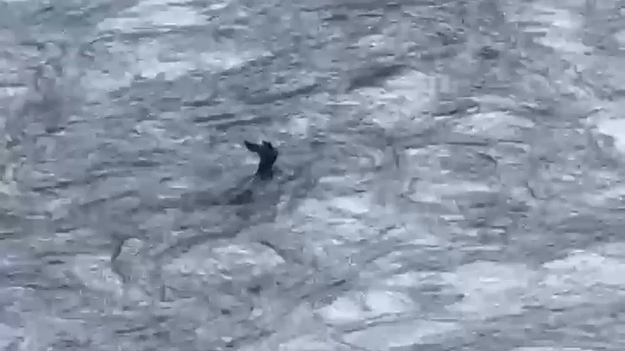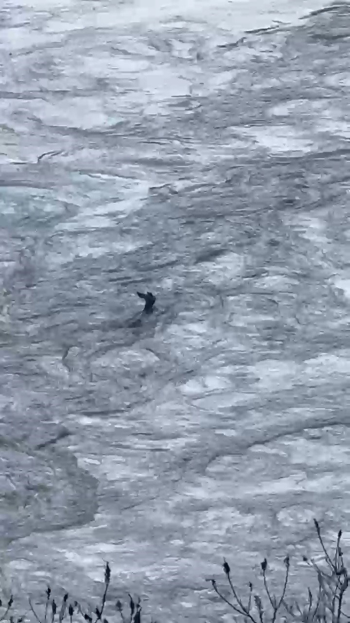 Karabük’te Filyos Çayı’nda akıntıya kapılarak sürüklenen karaca, cep telefonu ile görüntülendi.