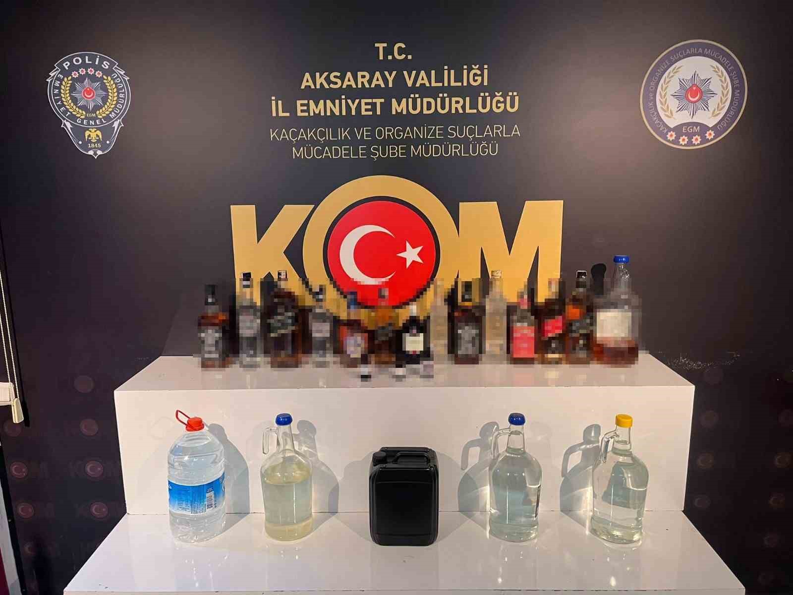 Edinilen bilgiye göre, kaçakçılık olaylarının önlenmesi amacıyla çeşitli çalışmalar yapan İl Emniyet Müdürlüğü Kaçakçılık ve Organize Suçlarla Mücadele (KOM) Şubesi ekipleri Aksaray merkezde bir iş yerinde sahte alkol ve içkilerin satıldığı bilgisine ulaştı. Bunun üzerine Aksaray Cumhuriyet Başsavcılığı koordinesinde harekete geçen KOM ekipleri sabahın erken saatlerinde iş yerine operasyon düzenledi. Gerçekleştirilen operasyonda R.T. (60) isimli iş yeri işletmecisi yakalanarak gözaltına alınırken yapılan aramalarda 3 adet içki yapımında kullanılan alkol kiti, 5 litre etil alkol, 8 litre kaçak içki ve 30 litre sahte alkol ele geçirildi.