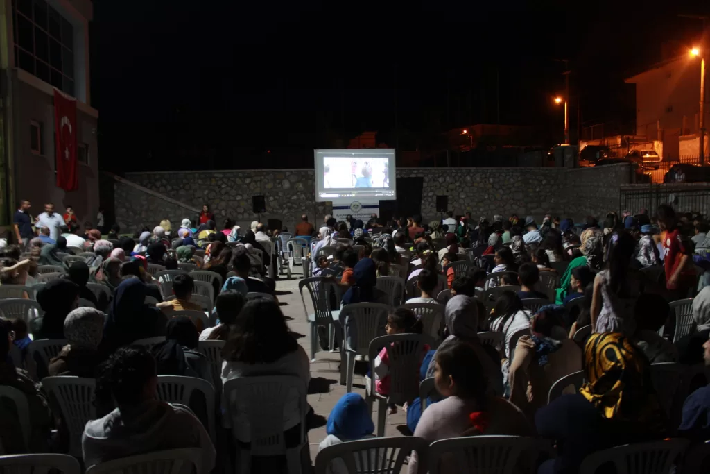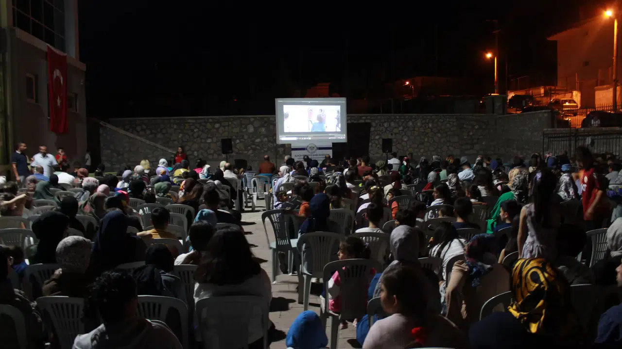 Açık hava sineması etkinliği, Zafer Bayramı'nın coşkulu atmosferini bir kez daha yaşatan ve vatandaşların keyifli bir akşam geçirmesini sağladı.