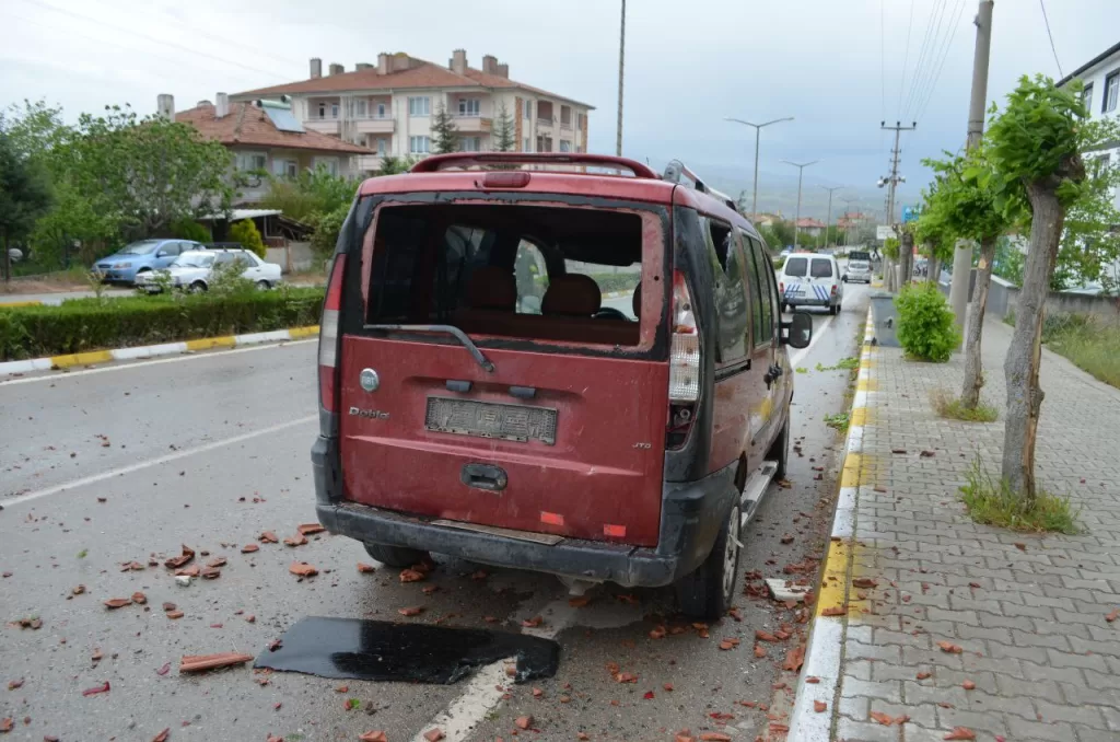 İlçedeki Kredi ve Yurtlar Kurumuna ait yurt binasının çatısı uçarken, bir binadan kopan güneş paneli de üzerine düştüğü otomobile zarar verdi.