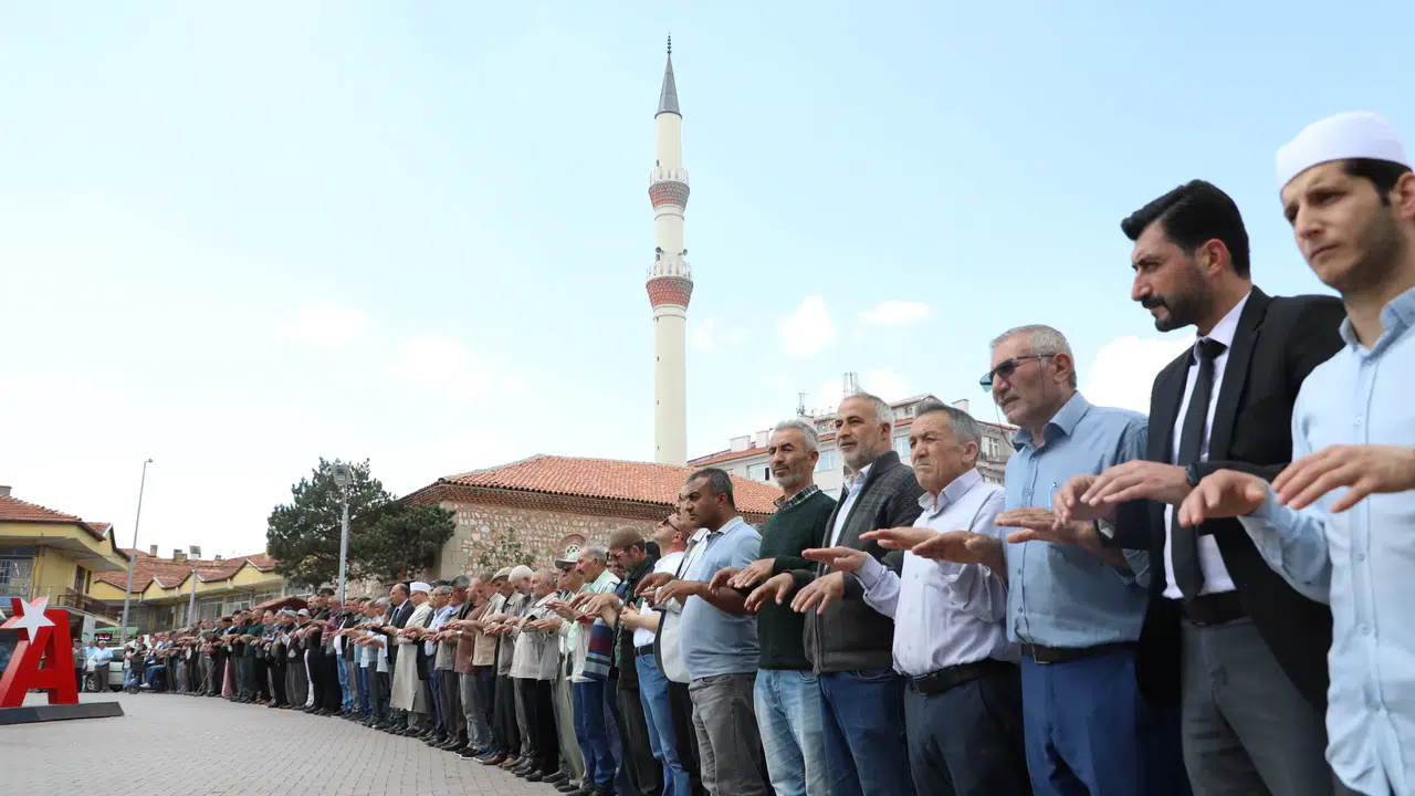 Cuma namazının ardından Cumhuriyet Meydanı'nda bir araya gelen vatandaşlar, yağmur duası yaptı.