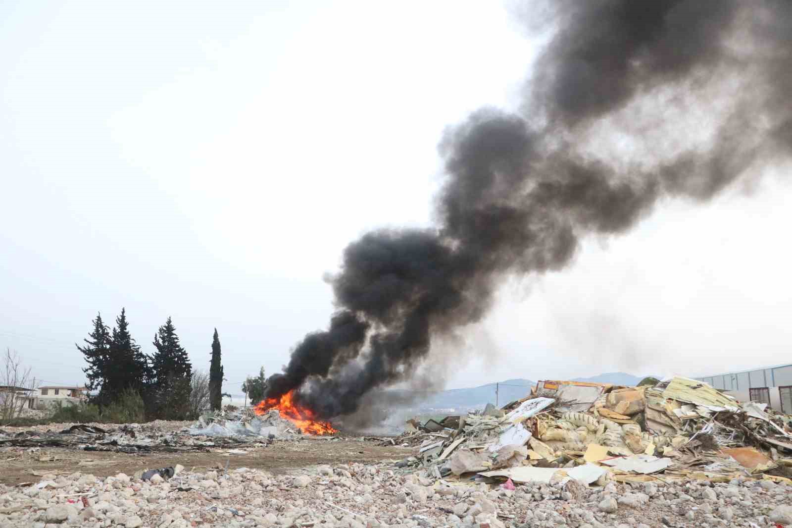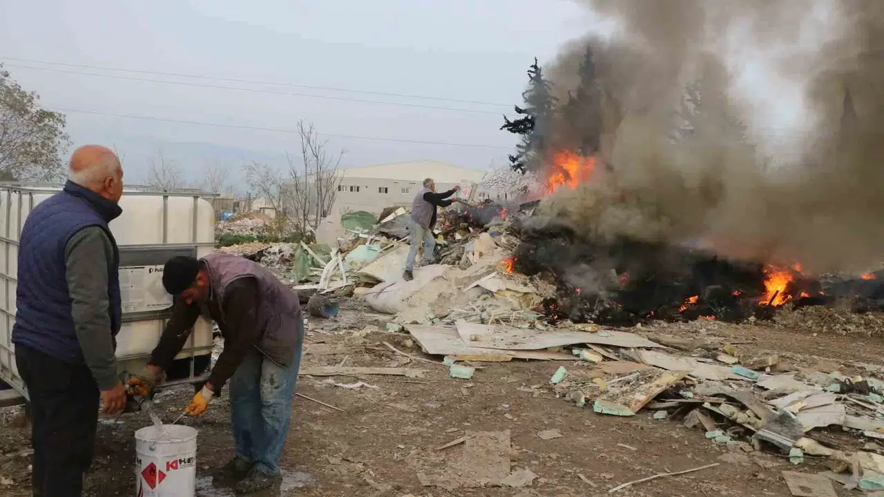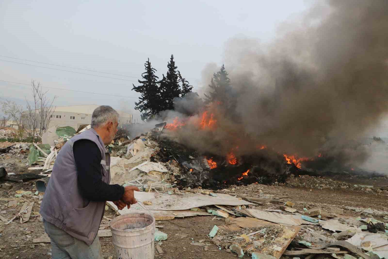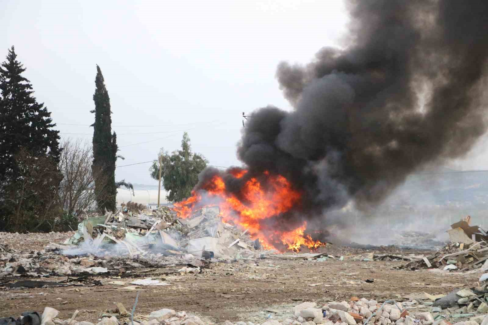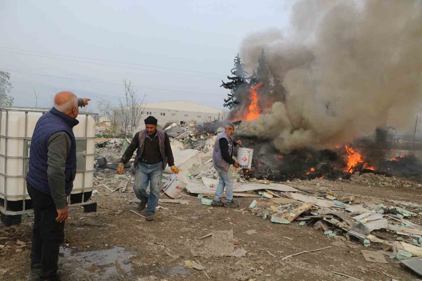 Hatay’da hafriyat atıklarının bulunduğu alanda çıkan yangın, vatandaşlar tarafından kovalarla su taşınarak söndürüldü.