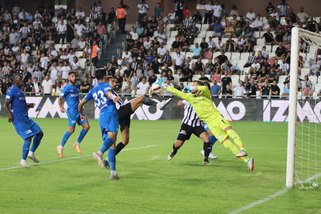 2. dakikada sağ kenardan Zeki’nin ortasında Deniz gelişine vurdu ve top yandan dışarı çıktı.