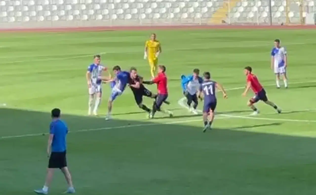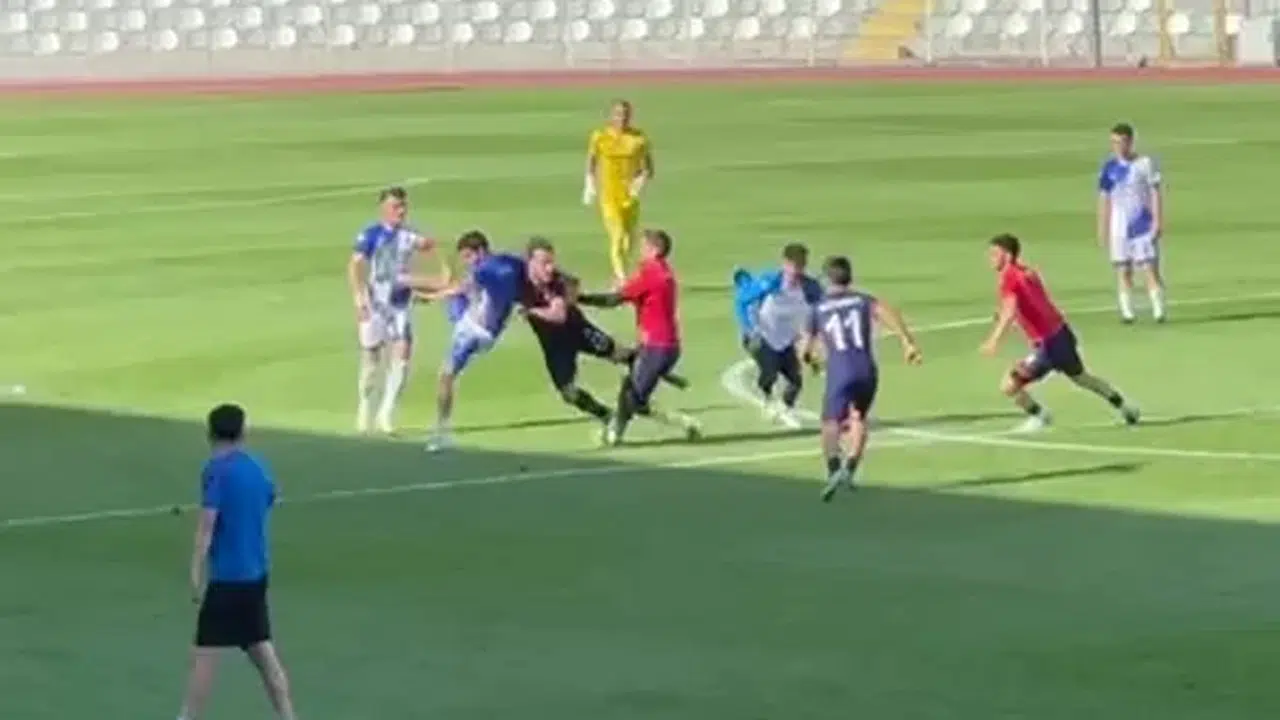 Amasya’da Amatör Maçta Kavga: Sahaya Çöp Kovası Atıldı, Futbolcular Birbirine Girdi
