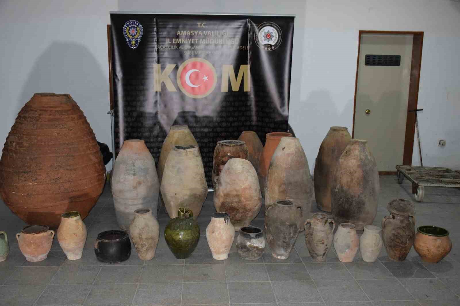Edinilen bilgiye göre, Amasya il merkezinde gece devriye yapan çarşı ve mahalle bekçileri şüphelendikleri bir minibüste çok sayıda küp olduğunu fark etmeleri üzerine durumu amirlerine bildirdi. Tarihi eser kaçakçılığı olabileceğinin değerlendirilmesi üzerine olay yerine Kaçakçılık ve Organize Suçlarla Mücadele Şubesi (KOM) ekipleri sevk edildi. Minibüsün arka kısmında yapılan aramada toplam 26 adet tarihi eser olduğu değerlendirilen küp ele geçirildi. Minibüste bulunan B.S, F.U ve R.H gözaltına alındı. 2863 sayılı Kültür ve Tabiat Varlıklarını Koruma Kanunu kapsamında tahkikat başlatıldı.