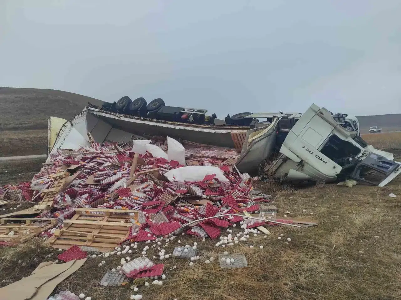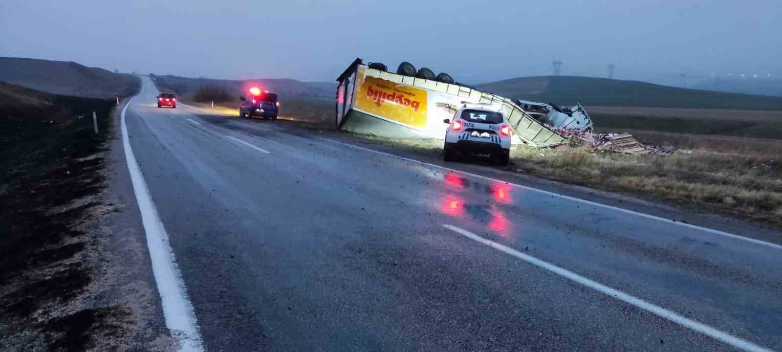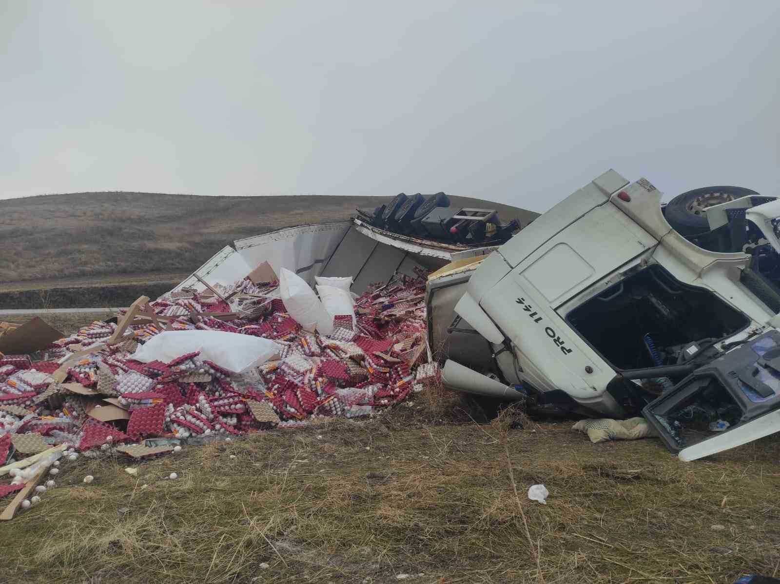 Tırın dorsesinden savrulan yüzlerce yumurta kırıldı. Kazayla ilgili inceleme başlatıldı.