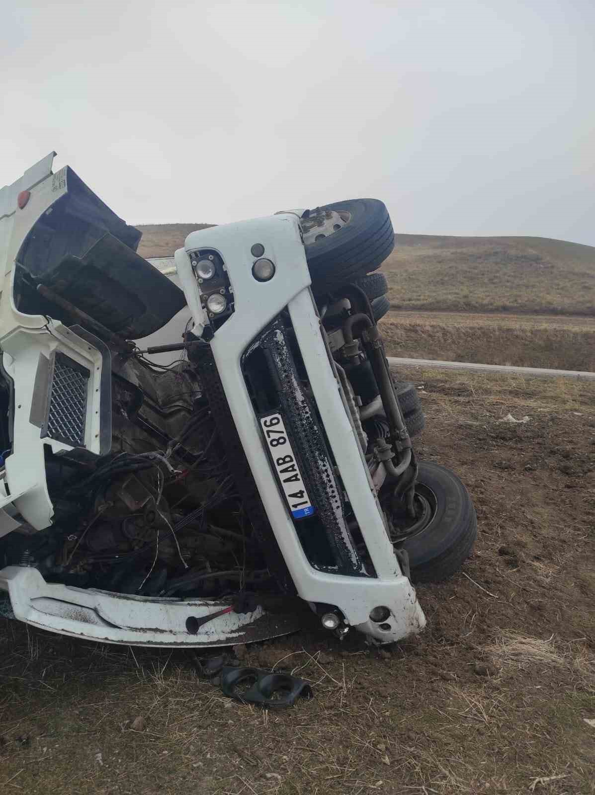 Edinilen bilgiye göre, Özgür K. yönetimindeki 14 AAB 876 plakalı tır, Amasya merkez Çavuş köyü mevkiinde yağış nedeniyle kayganlaşan yolda kontrolden çıkarak yol kenarına devrildi. Sürücü ve yanındaki Sezer A. yaralandı.