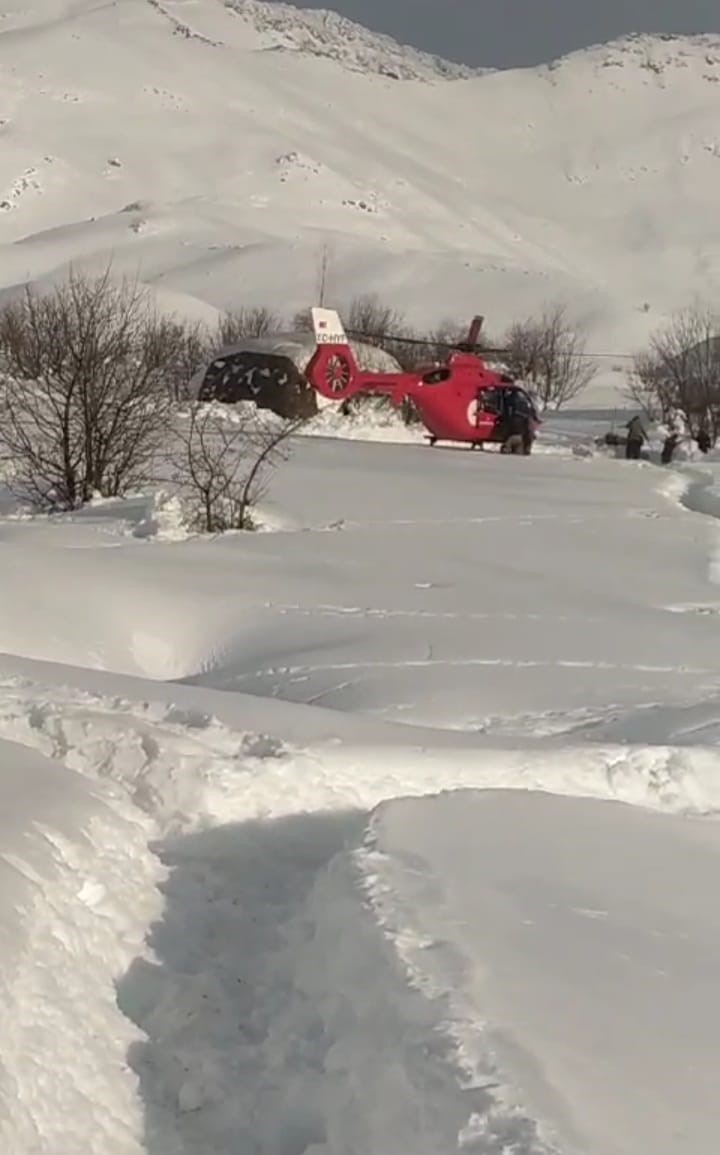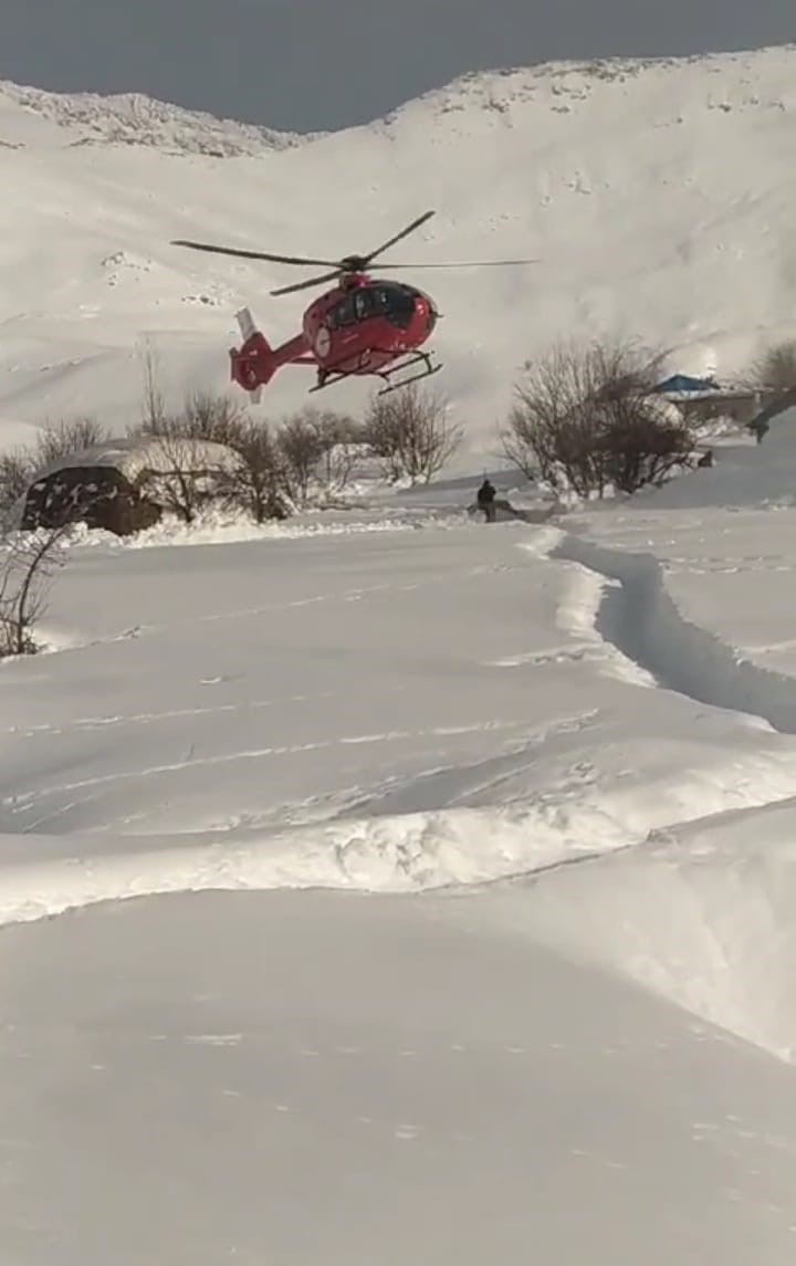 İran sınırında bulunan Şemdinli ilçesine 15 kilometre mesafedeki bin 915 rakımlı Alan köyünde yaşayan Eren ailesinin 7 aylık bebeklerinin yüksek ateşi sebebi ile 112 Acil Çağı Merkezi’n aradı. Çığ tehlikesinin olduğu ve yolların açılamayacağı bilgisi üzerine 112 Komuta Kontrol Merkezi tarafından bölgeye helikopter ambulans yönlendirildi. Yaklaşık 1 saat sonra yüksek rakımlı, kârın çok fazla olduğu ve sınırın sıfır noktasında bulunan köye iniş yapan helikopter ambulans sağlık ekibi tarafından 7 aylık bebek alınıp, Şemdinli Devlet Hastanesine nakli sağlandı. Şemdinli Devlet Hastanesine getirilen bebeğimizin tedavisi yapıldı.