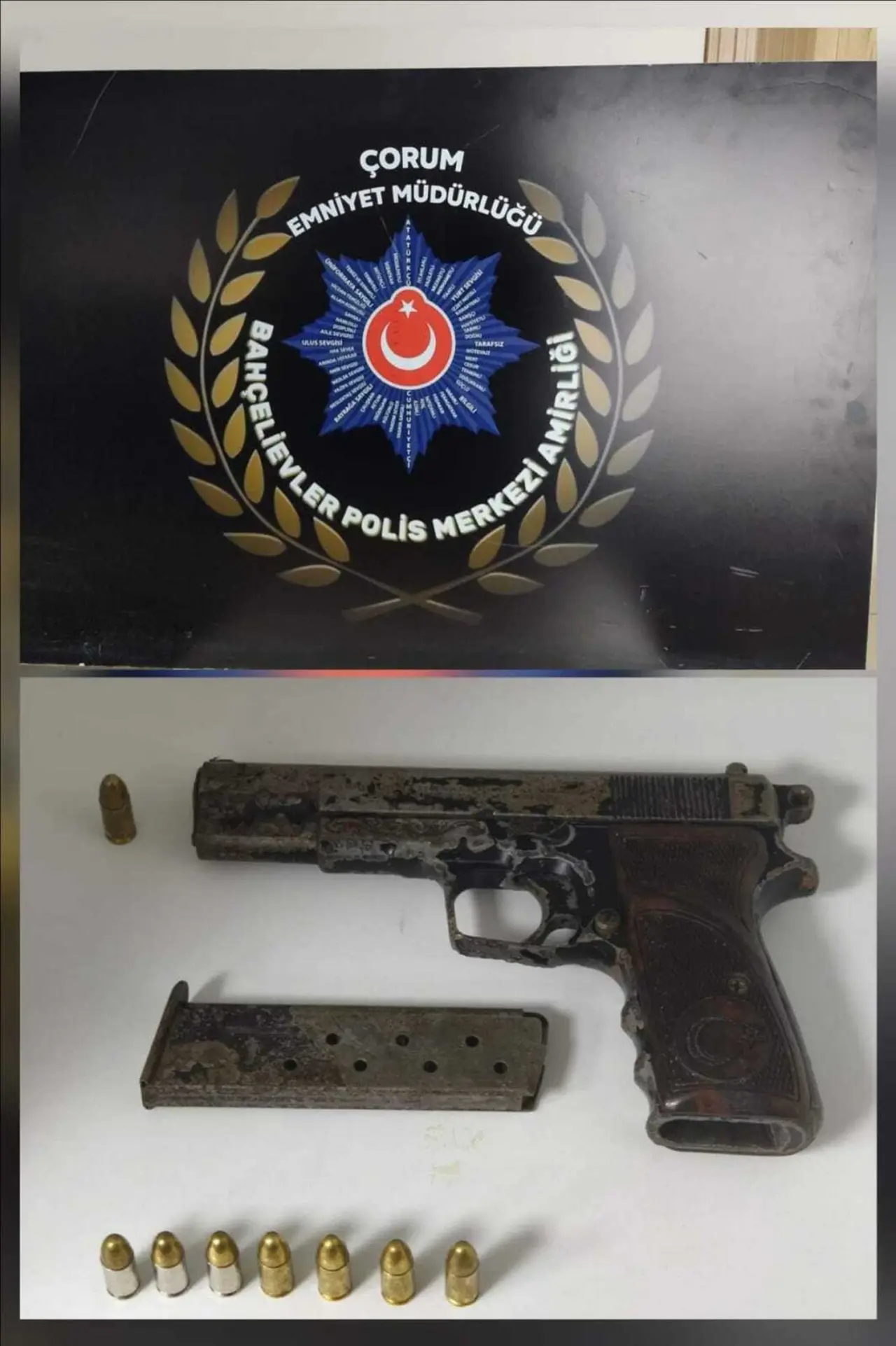 Yapılan kontrollerde ise 3 adet ateşli silah, 1 adet kesici-delici alet, 8 adet tabanca fişeği, 179 adet sentetik ecza, 159.08 gram sentetik kannobionoid ele geçirildi.