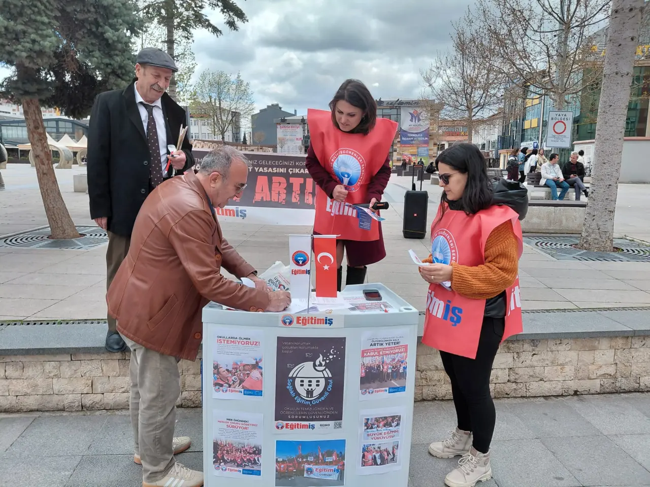 Eğitim-İş Çorum Şubesi eğitim yuvalarının daha güvenli ve sağlıklı bir yapıya kavuşturulması amacıyla Kadeş Barış Meydanı'nda başlattığı imza kampanyasıyla vatandaşlardan yoğun destek görüyor.