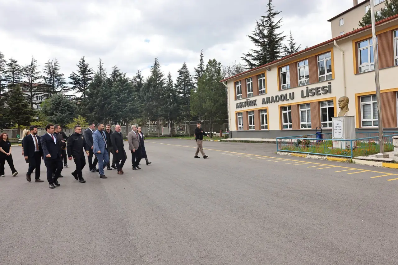 Atatürk Anadolu Lisesi ve Ahmet Tevfik İleri Ortaokulunu ziyaret eden heyette Vali Ali Çalgan'ın yanı sıra Vali Yardımcısı Yeliz Mercan, İl Emniyet Müdürü Arif Pehlivan ve İl Milli Eğitim Müdürü Cemil Çağlar yer aldı.