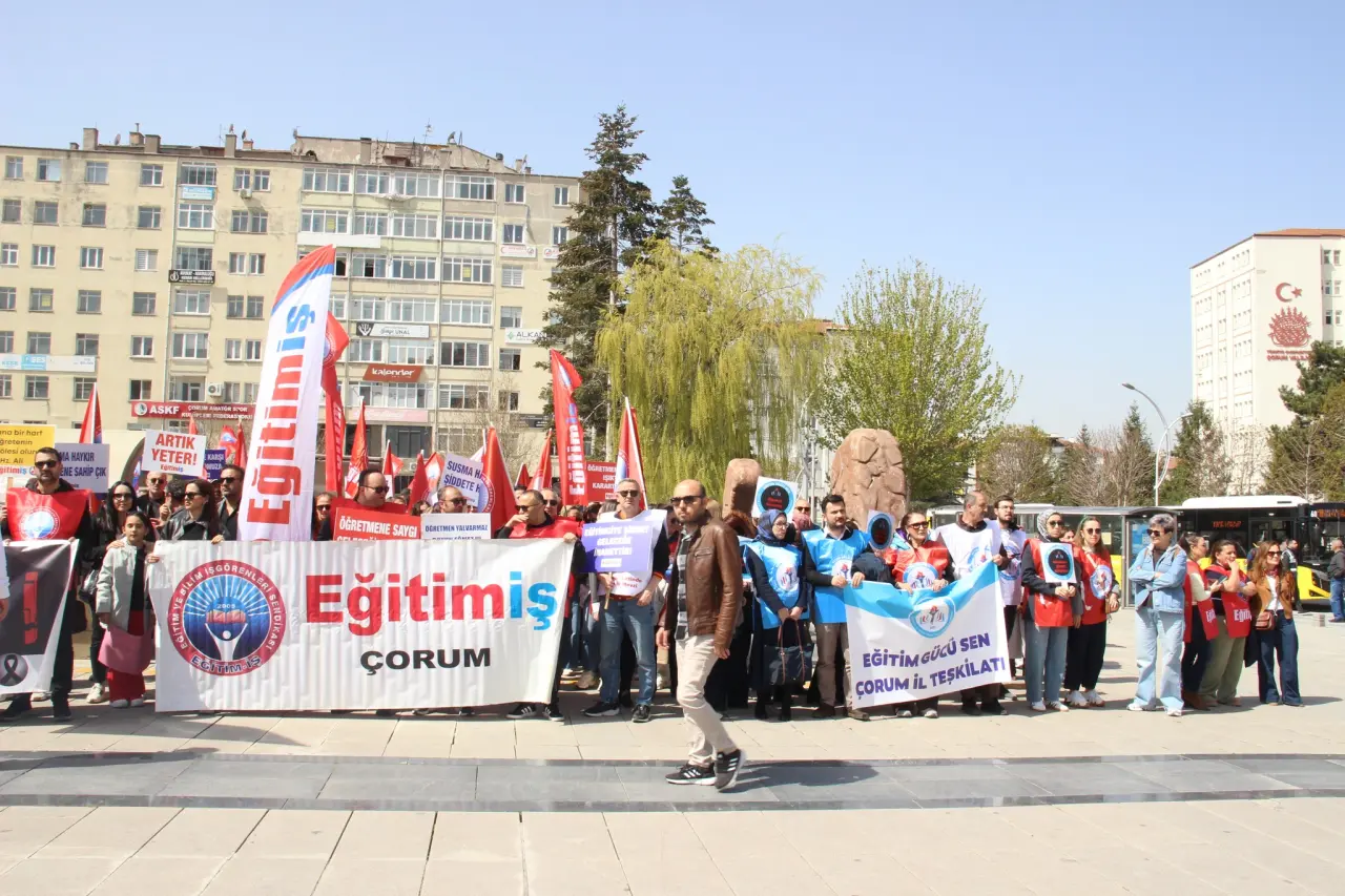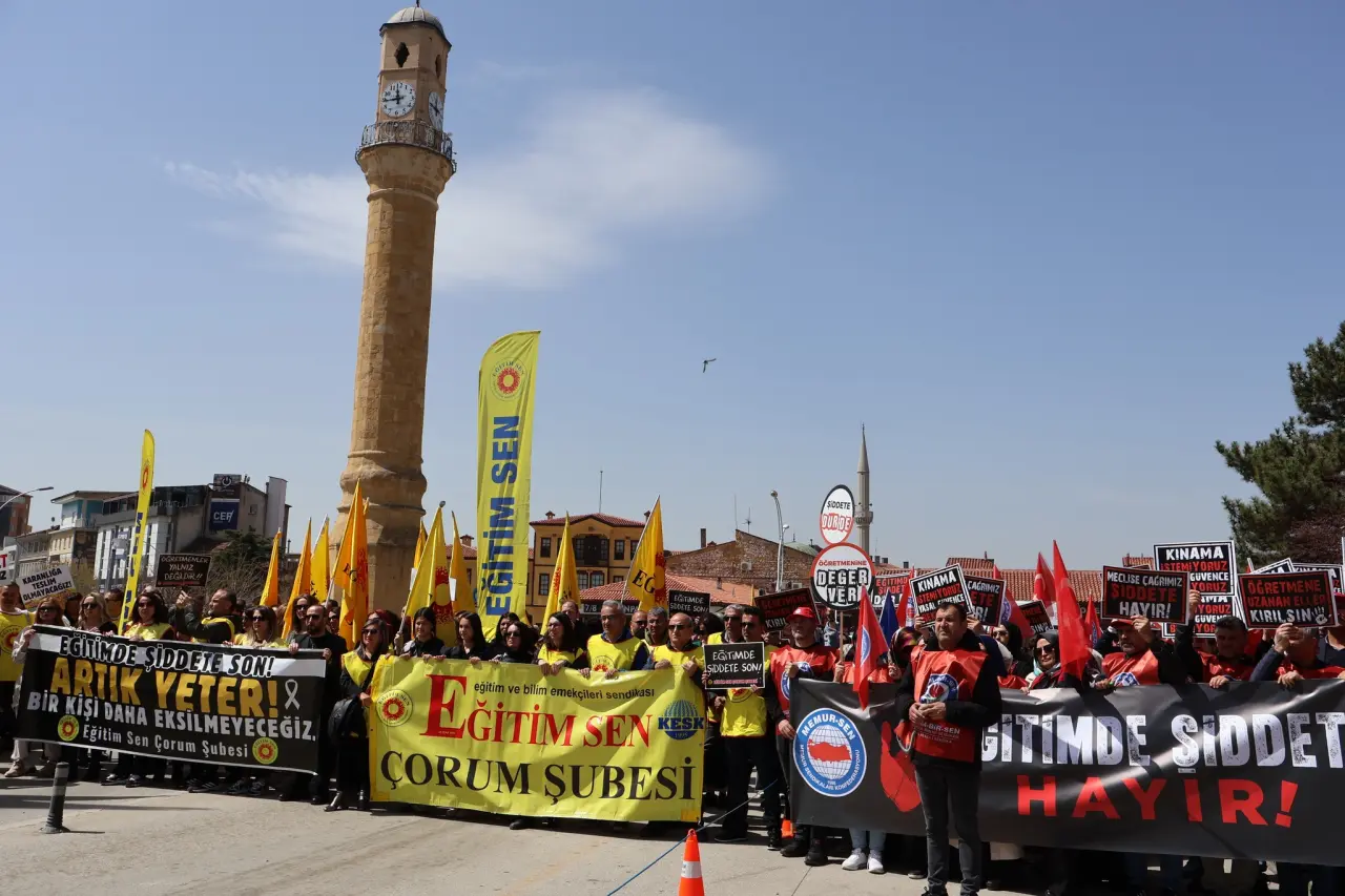 Şanlıurfa'nın Siverek ilçesinde bir lisede meydana gelen silahlı saldırının ardından Çorum'da bir araya gelen eğitim sendikaları iki günlük iş bırakma kararı alarak okullarda artan şiddet olaylarına karşı kitlesel bir yürüyüş ve ortak basın açıklaması düzenledi. Çorum'da faaliyet gösteren Eğitim-Bir-Sen, Türk Eğitim-Sen, Eğitim-İş, Eğitim-Sen, Eğitim Gücü-Sen, Hürriyetçi Eğitim-Sen ve Anadolu Eğitim Sendikası üyeleri Kadeş Barış Meydanı'nda toplanarak Saat Kulesi'ne kadar sloganlar eşliğinde yürüdü.