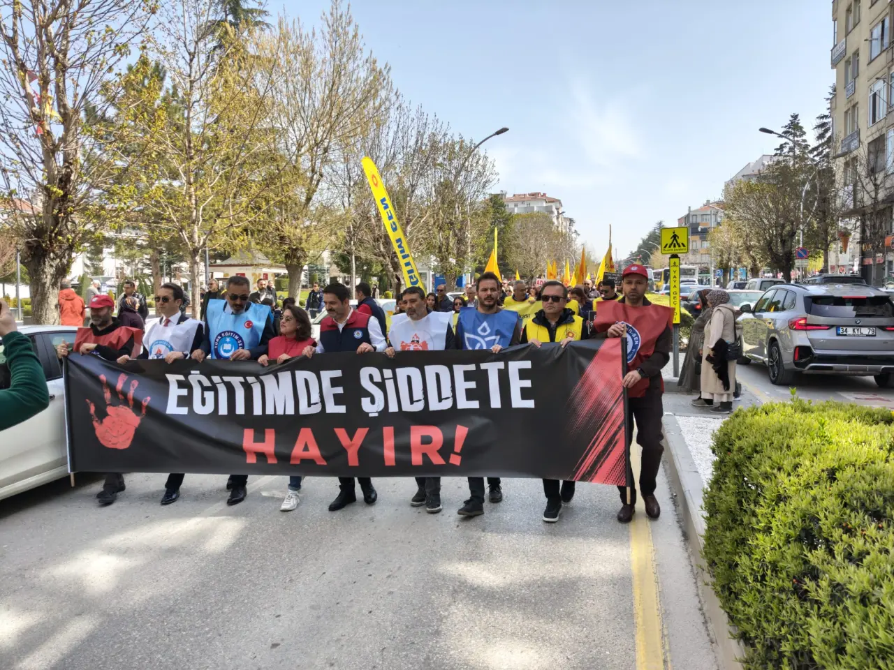 Eğitimde şiddetin son bulması çağrısında bulunulan eyleme Türkiye Kamu-Sen İl Temsilcisi Emir Dağaşan, Türk-İş İl Temsilcisi İhsan Üçtepe, KESK İl Temsilcisi Nevzat Veldet, DİSK İl Temsilcisi Nevzat Aydın ile çok sayıda vatandaş da geniş katılımla destek verdi.