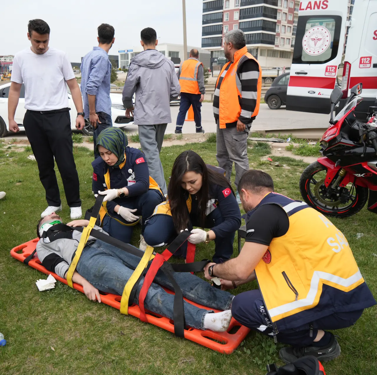 Çarpmanın etkisiyle kontrolden çıkan hafif ticari araç takla attı. Kazada yaralanan motosikletlinin yardımına çevredeki vatandaşlar koştu. İhbarla olay yerine sağlık ve polis ekipleri sevk edildi.