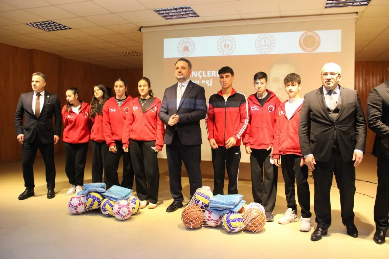 Bakan Yardımcısı Eminoğlu, Çorum Spor Lisesi’nde gerçekleştirilen Gençlerle Söyleşi programında öğrencilerle bir araya geldi. Enes Eminoğlu, Çorum’un sporcu yetiştirme anlamında zengin bir şehir olduğunu ifade ederek, "Çorum spor anlamında zengin bir şehrimiz. Geçmişte dünya, olimpiyat şampiyonları çıkartan bir şehrimiz. Mahmut Atalay başta olmak üzere güreşte, farklı alanlarda milli sporcu yetiştiren; dünya, olimpiyat şampiyonları yetiştiren bir şehrimiz. Aynı zamanda manevi anlamda da birçok sahabinin meftun olduğu topraklardan bahsediyoruz. Hz. Mevlana’nın öğüdünde bahsettiği gibi bir tarafta ayağımız sabit. Milli değerlerimize, geleneklerimize, örflerimize, geçmişimize o bağı kuracağız. Pergelin dönen ayağındaki gibi teknolojiyi, bugünkü bilimi, bugünkü yapay zekayı, dünyadaki yaşananları en güzel şekilde takip edeceğiz ve ülkemizi uluslararası alanda temsil edeceğiz. Bu anlamda da Çorum Spor Lisesi’nde okuyan arkadaşlarımız olarak sizler bu çalışmaları yapan kardeşlerimizsiniz. Hepinizi ayrı ayrı tebrik ediyorum" ifadelerini kullandı.