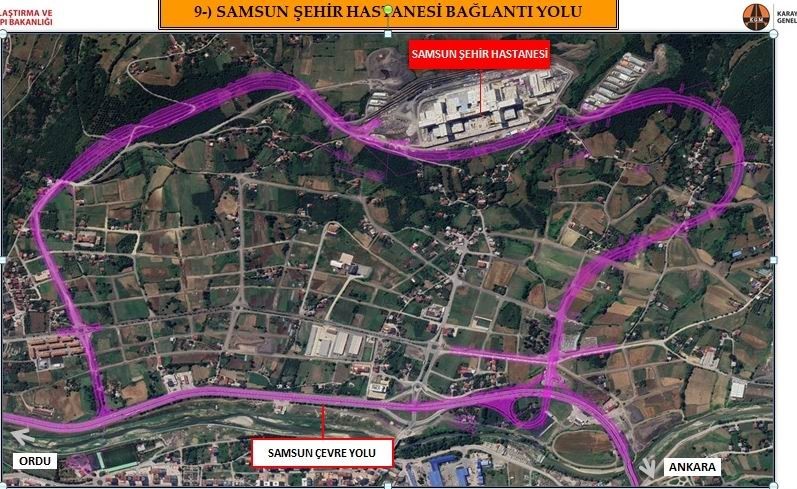 Samsun başta olmak üzere Karadeniz Bölgesi’nin sağlık alanında ihtiyaç duyduğu yapımı devam eden bin 103 yataklı Samsun Şehir Hastanesi’nin ulaşım yolu Samsun-Ordu Çevre Yolu’na bağlanacak şekilde projelendirildi. 2 x 3 şeritli, bölünmüş yol/bitümlü sıcak karışım standardındaki toplam 5,3 km uzunluğundaki proje, 16 Haziran tarihinde 999 milyon 993 bin 350 TL sözleşme bedeliyle Karayolları 7. Bölge Müdürlüğü tarafından ihale edildi. Çevre yolundan 2 hatla şehir hastanesine bağlanacak şekilde projelendirilen yolun, Samsun Şehir Hastanesi’nin açılış tarihi dikkate alınarak 2,2 km uzunluğundaki kısmının mart ayı içerisinde tamamlanarak trafiğe açılması hedefleniyor. Çalışmalara 8 Ağustos 2023 tarihinde başlandı. Projenin 2024 yılı sonu itibarıyla 5,3 km yolun tamamının bitirilerek trafiğe açılması hedefleniyor.