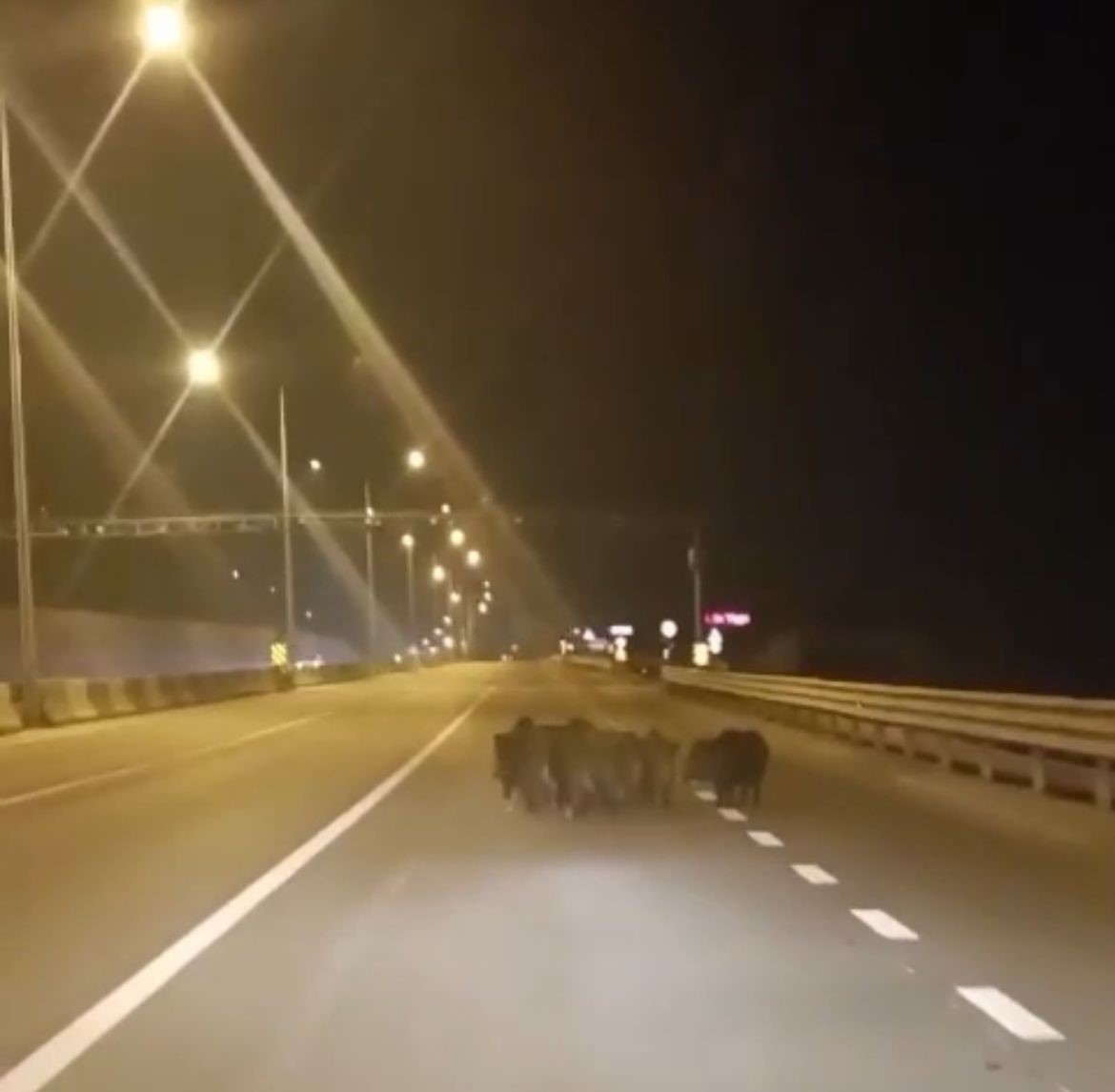 Cadde üzerindeki domuz sürüsü, bir süre sonra ortadan kayboldu.