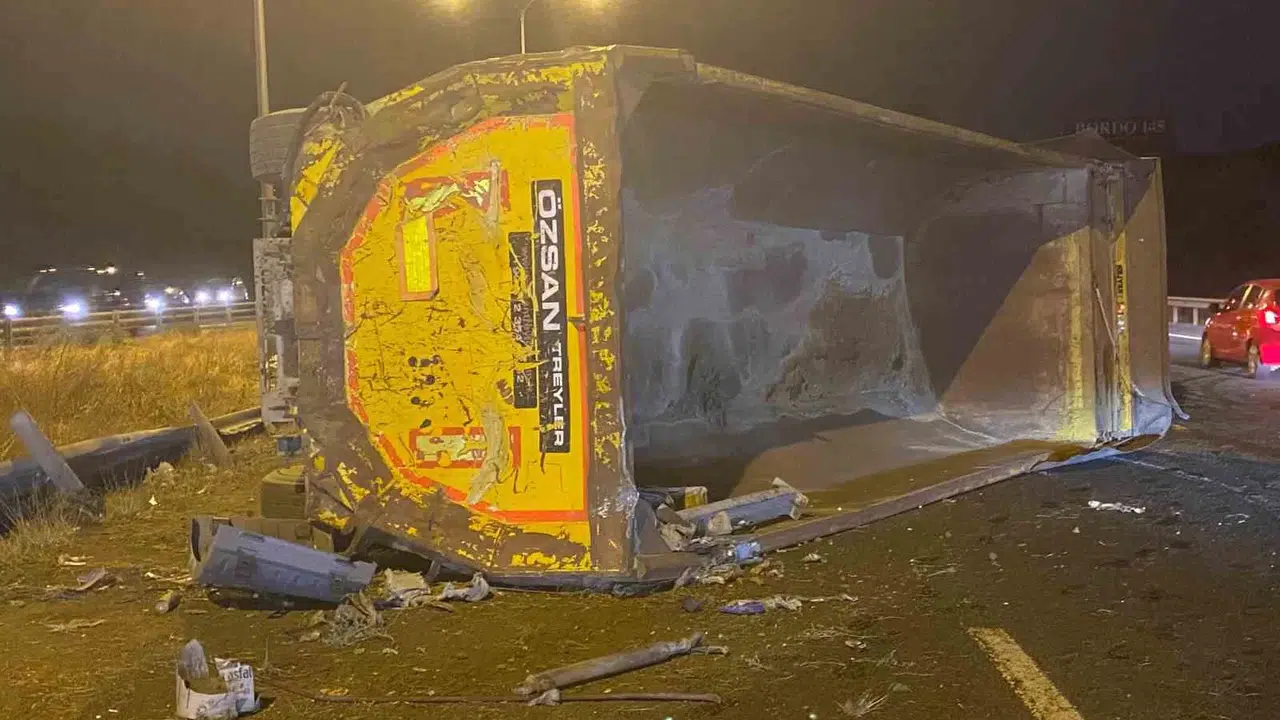 Ankara Çevre Yolu’nda sürücüsünün kontrolünden çıkan tır, refüje çarparak devrildi.